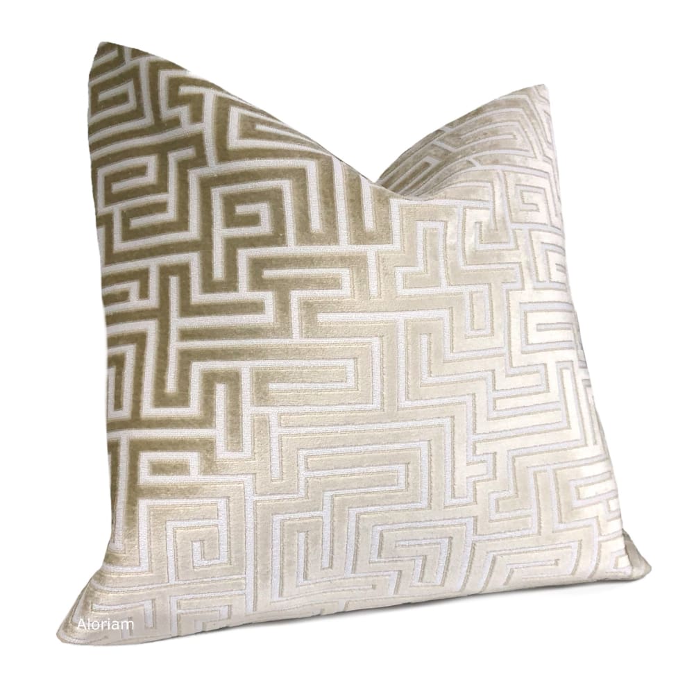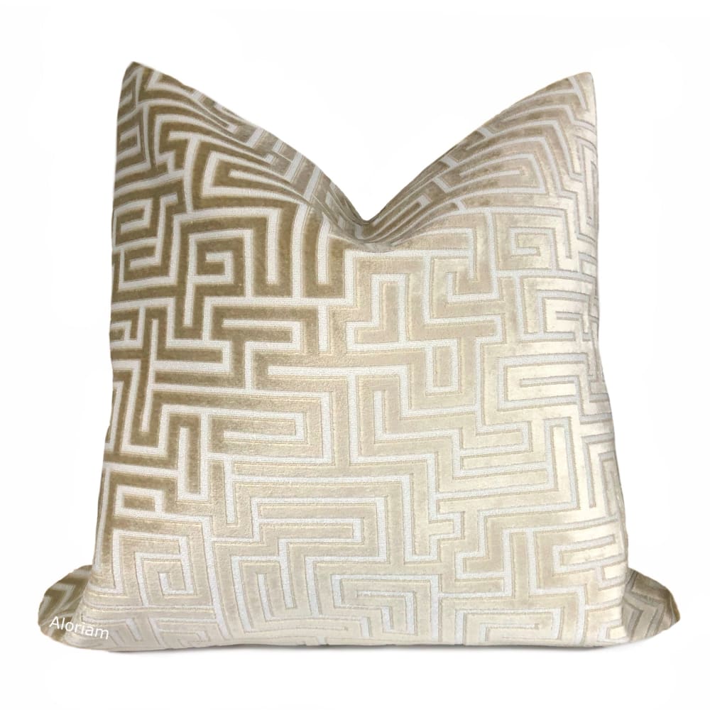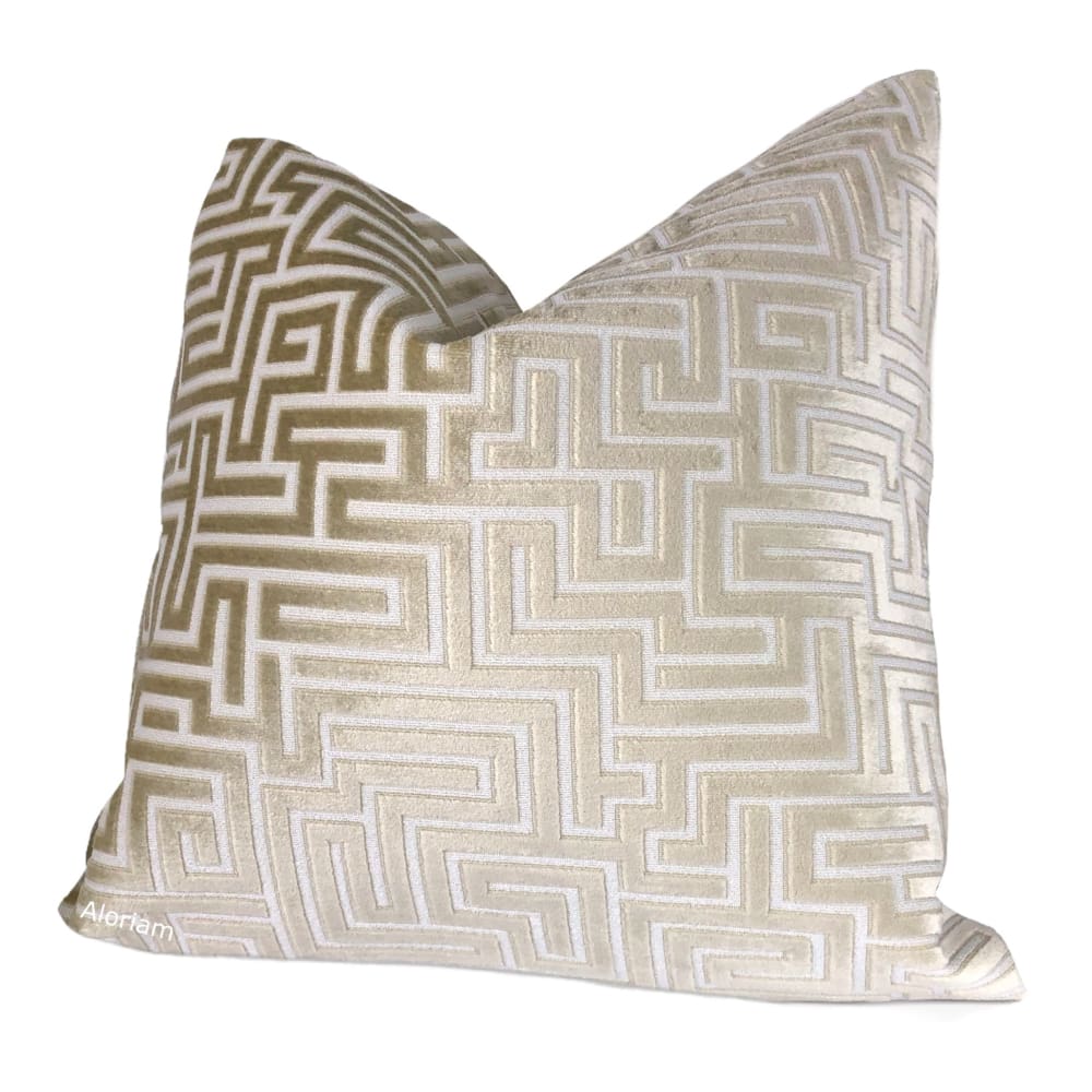 Eugene Champagne Cream Greek Key Velvet Pillow Cover