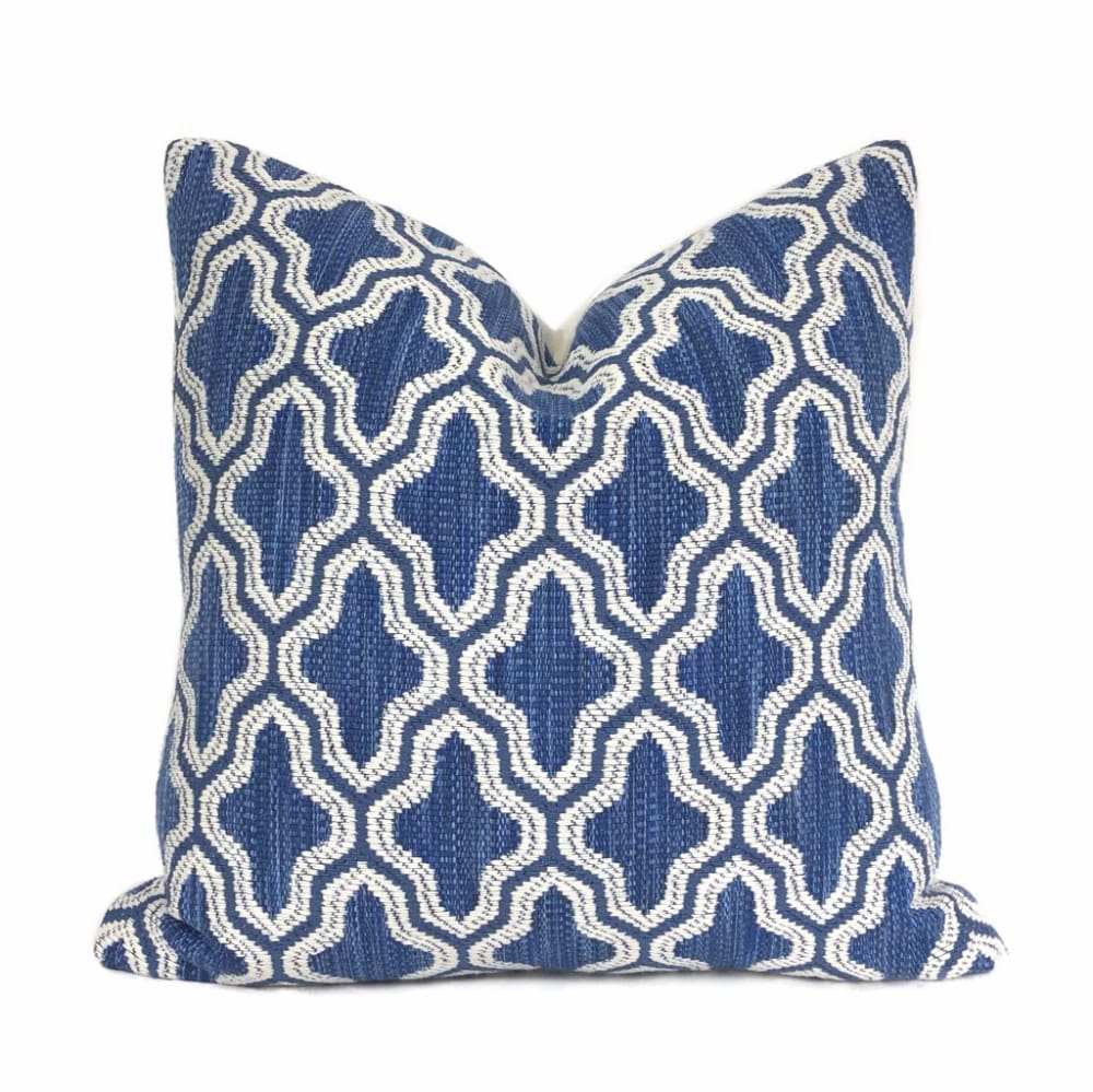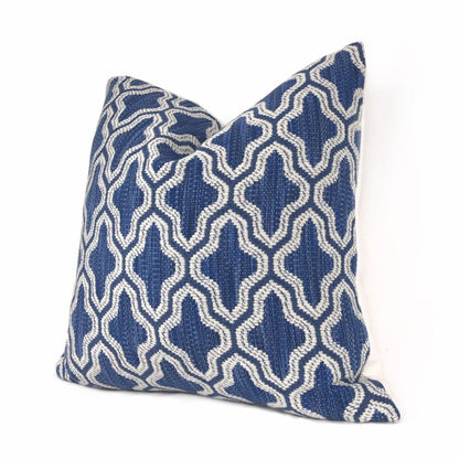 Ezra Blue White Moorish Tile Pillow Cover (Fabric by the Yard available)