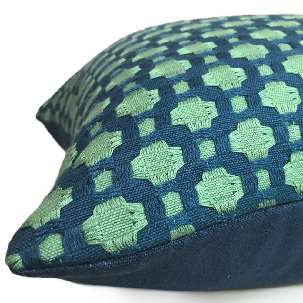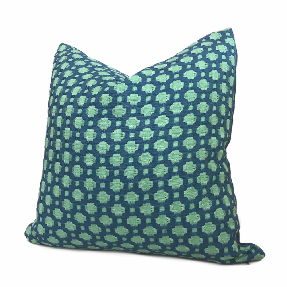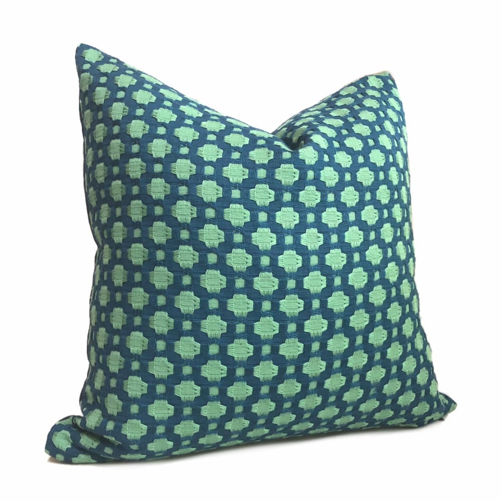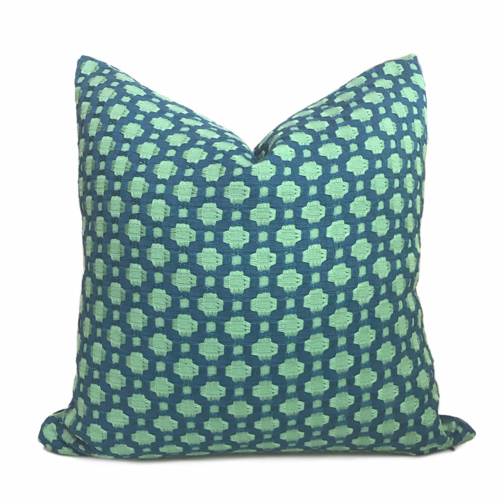 F Schumacher Betwixt Peacock Seaglass Blue Green Geometric Checks Pillow Cover