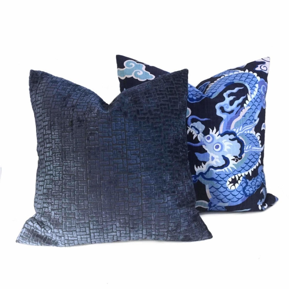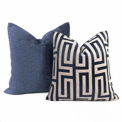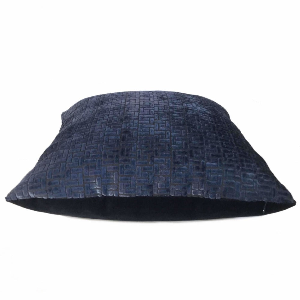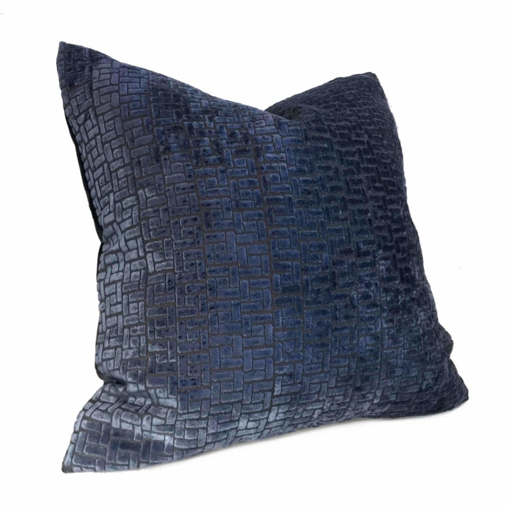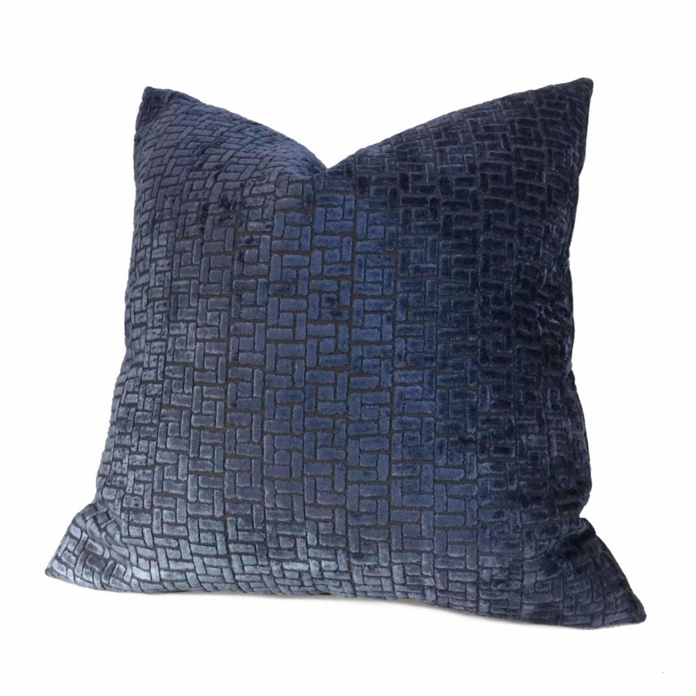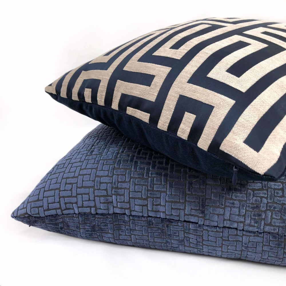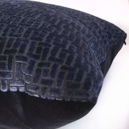 Bari Ink Blue Velvet Geometric Lattice Pillow Cover