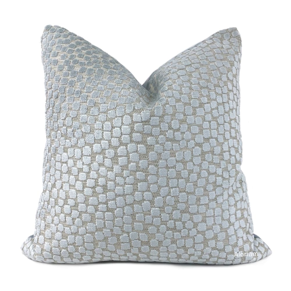 Flurries Seaspray Pale Blue Cut Velvet Dots Pillow Cover