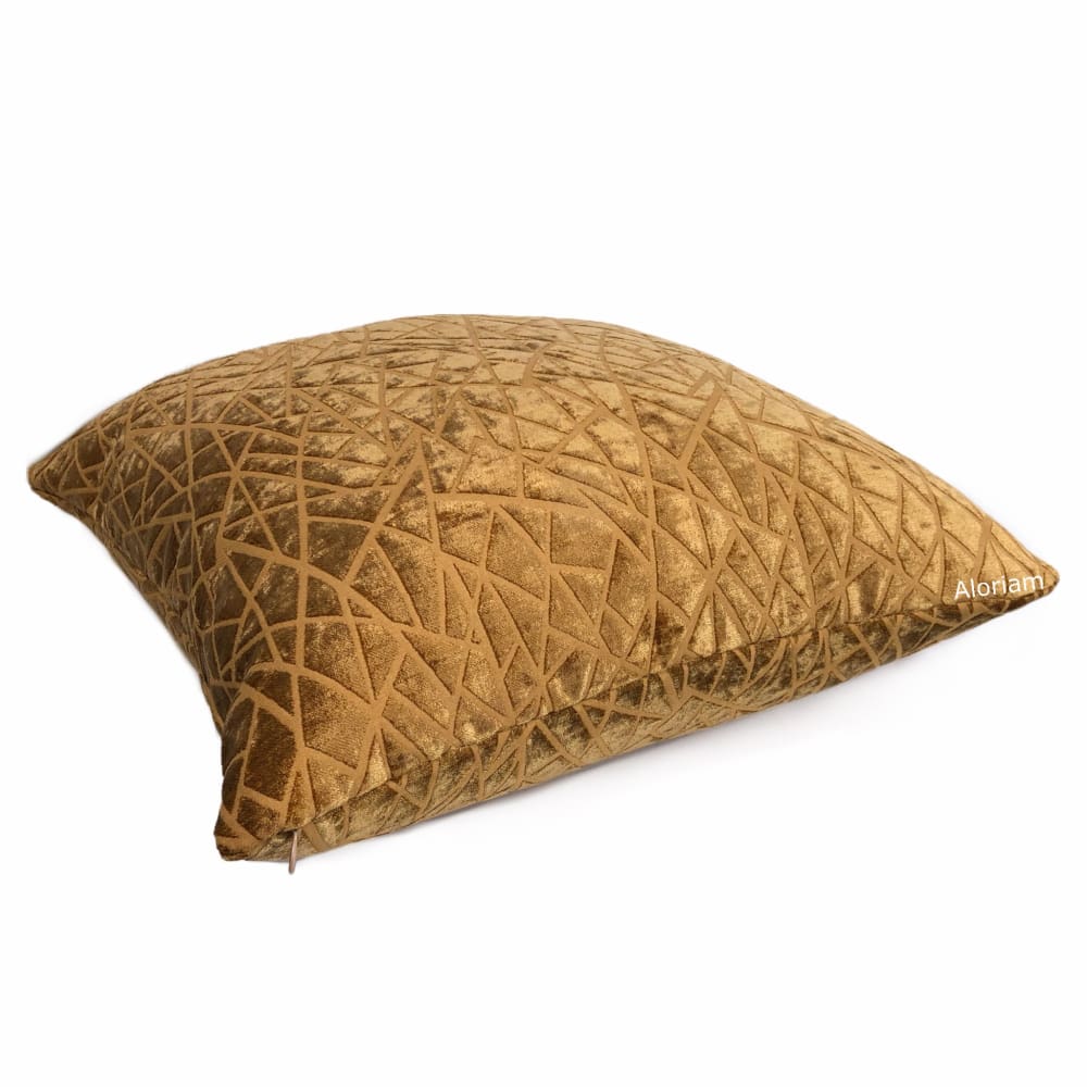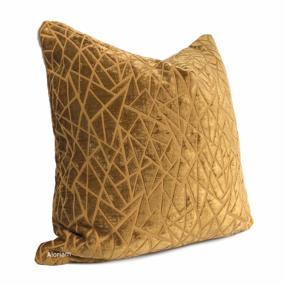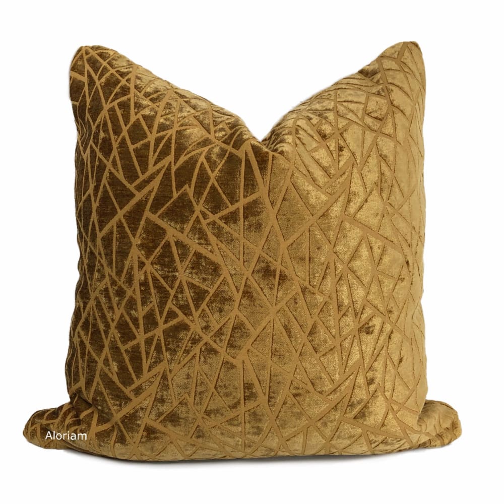 Fractal is a golden amber colored chenille pillow cover featuring a triangular geometric design. With a soft fuzzy texture, Fractal is a fabulous partner to many other patterns. Check out the photos for some ideas.