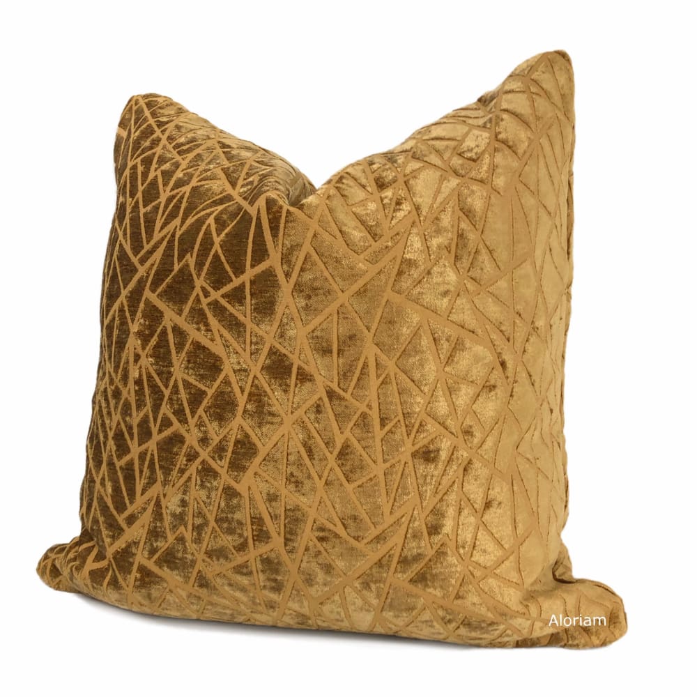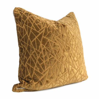 Fractal Golden Amber Modern Geometric Chenille Pillow Cover