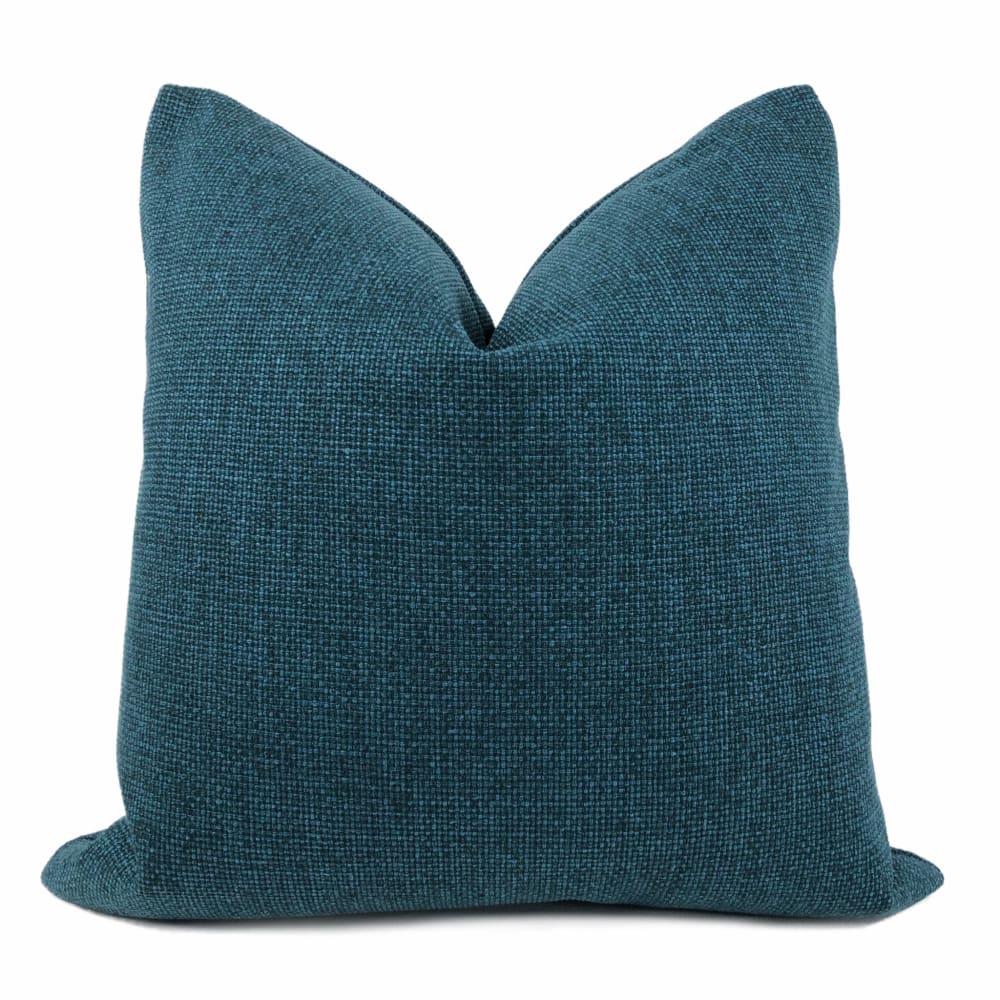 The Frazier pillow cover features a deep teal green color and a woven basketweave texture. This beautiful shade is the perfect solid to coordinate with many other patterns. Frazier is a performance polyester upholstery fabric that is durable and stain resistant.