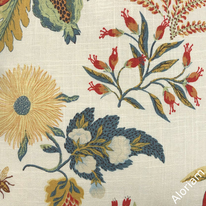 The “Fleur Botanical” print by French General reflects the color palette of the French countryside in Cognac. Golds, olive greens, warm neutrals, spice and coral come together in a charming botanical print with a vintage vibe.