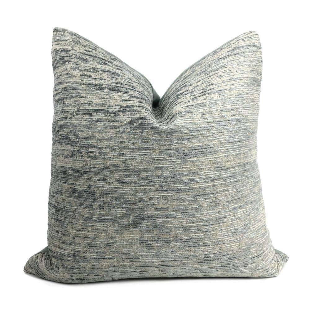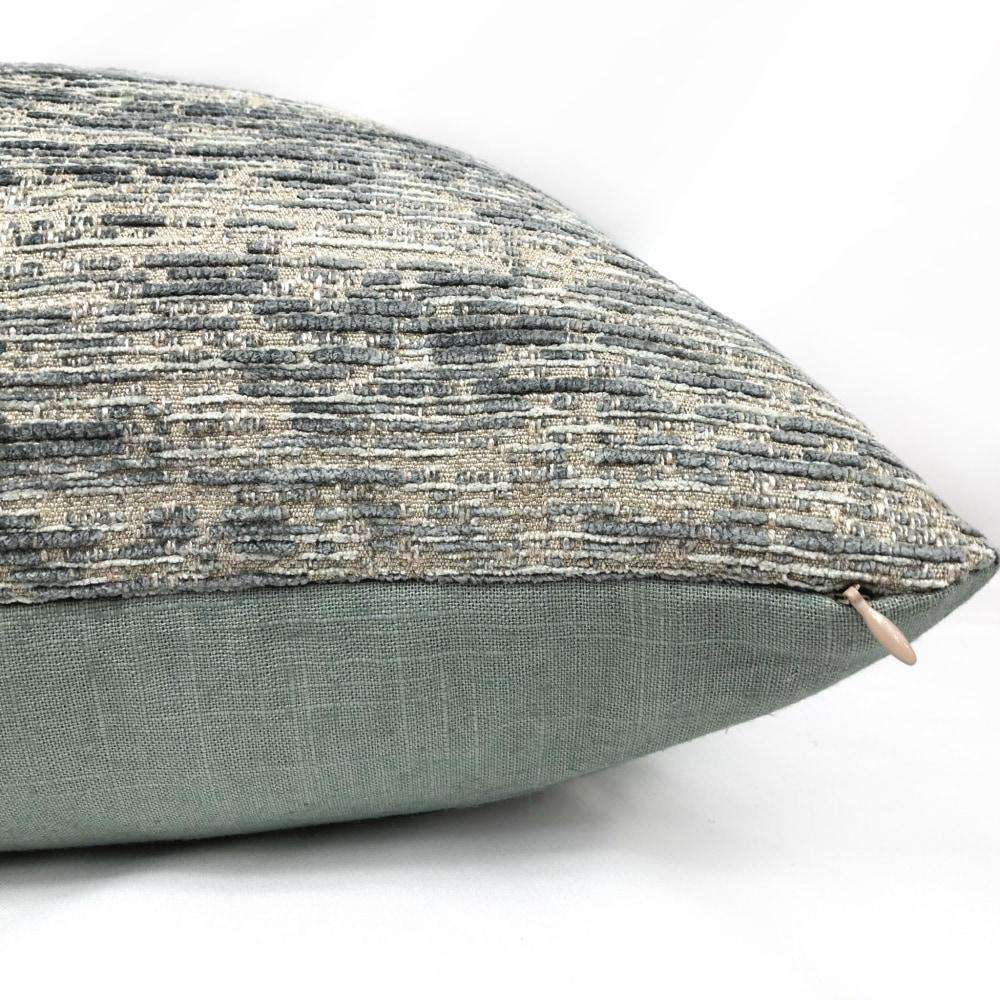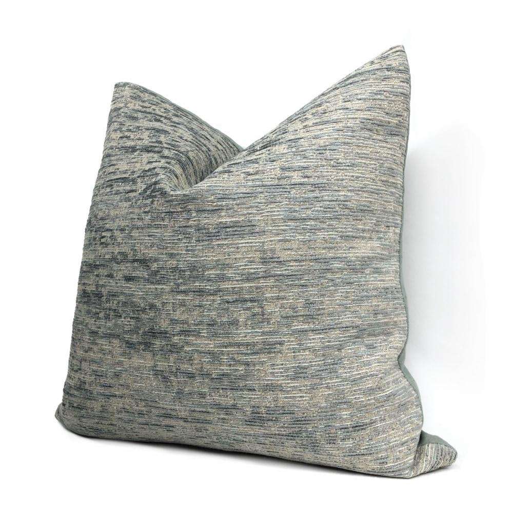 Almost sold out! Rugged visual texture contrasts with a soft chenille handle make this pillow cover as a must-have in your home interior. Woven in Italy, this high end designer fabric retails for over $135 a yard and displays a range of sage green and gray-toned greens mixed with bits of ivory, pale gray and beige.