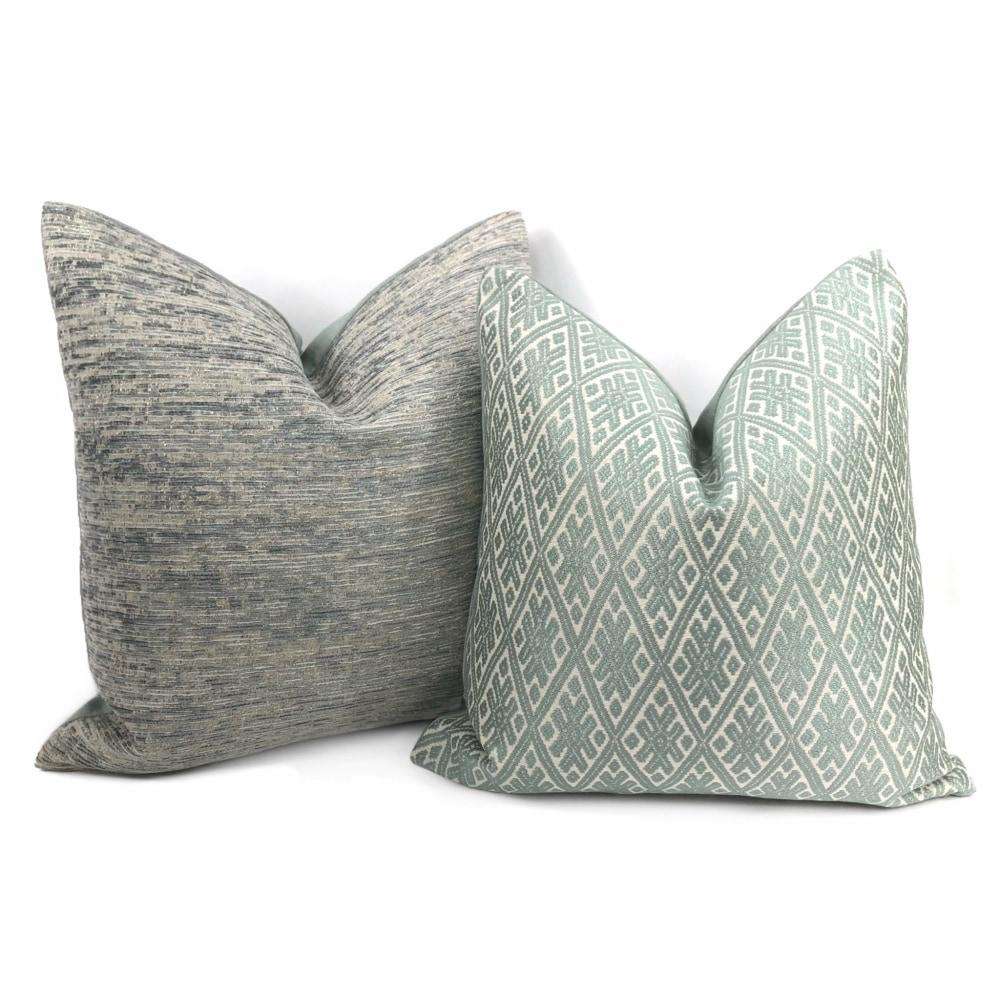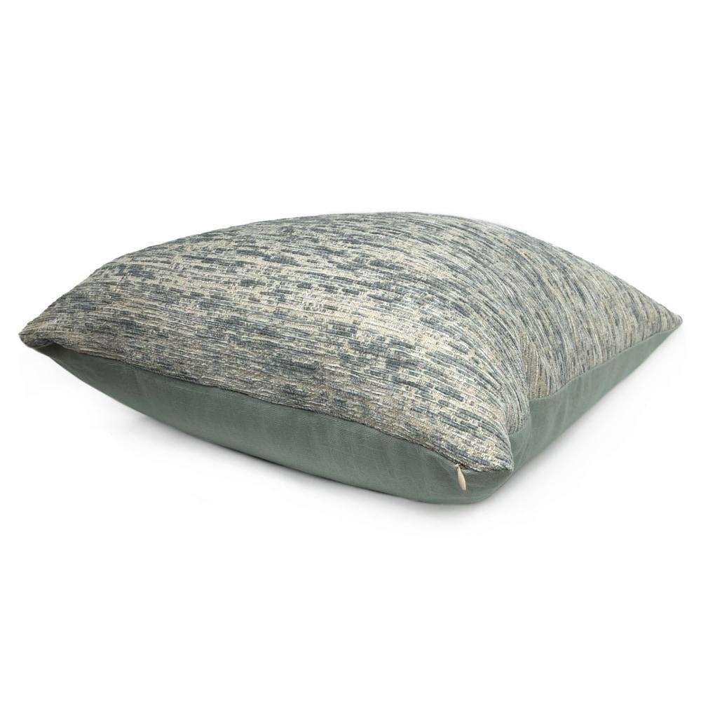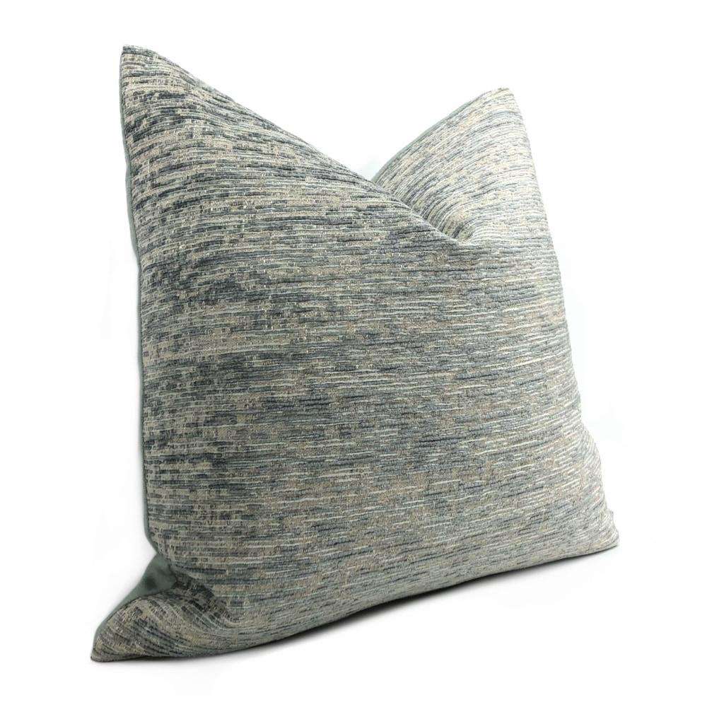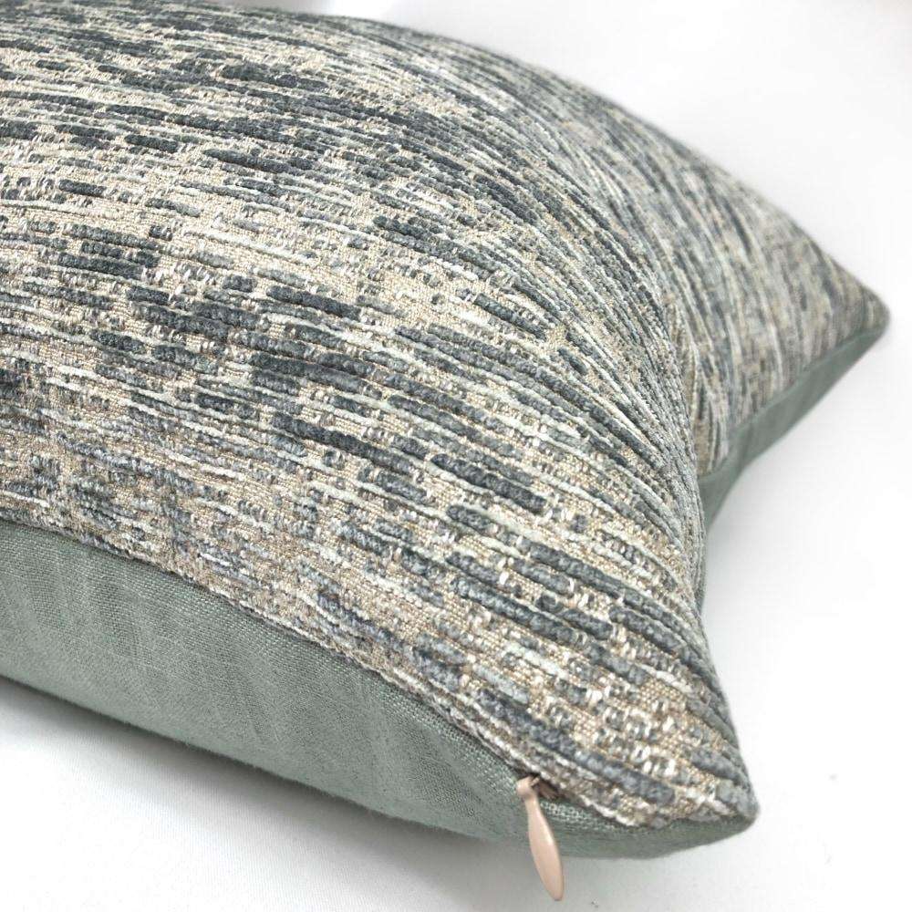 Almost sold out! Rugged visual texture contrasts with a soft chenille handle make this pillow cover as a must-have in your home interior. Woven in Italy, this high end designer fabric retails for over $135 a yard and displays a range of sage green and gray-toned greens mixed with bits of ivory, pale gray and beige.