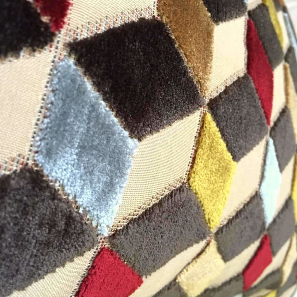 (CLEARANCE) Metropol Geometric Cut Velvet Cubes Brown Red Blue Beige Pillow Cover