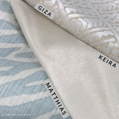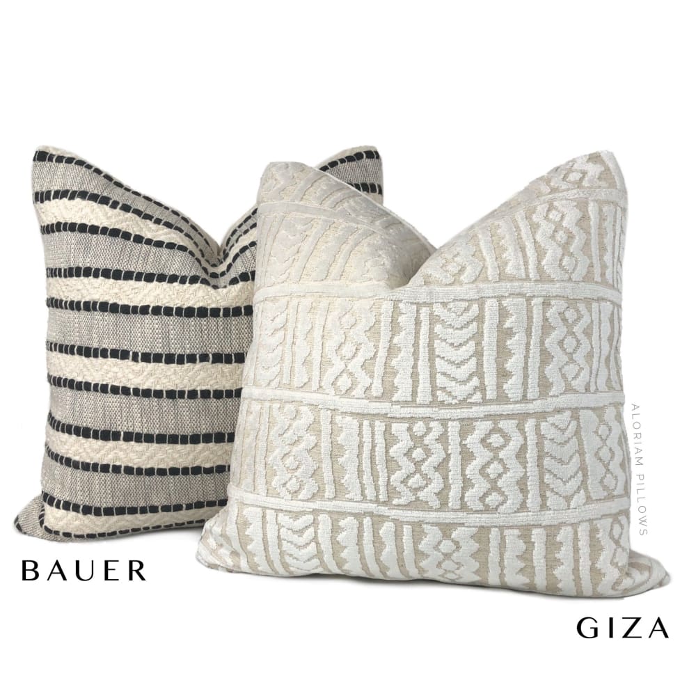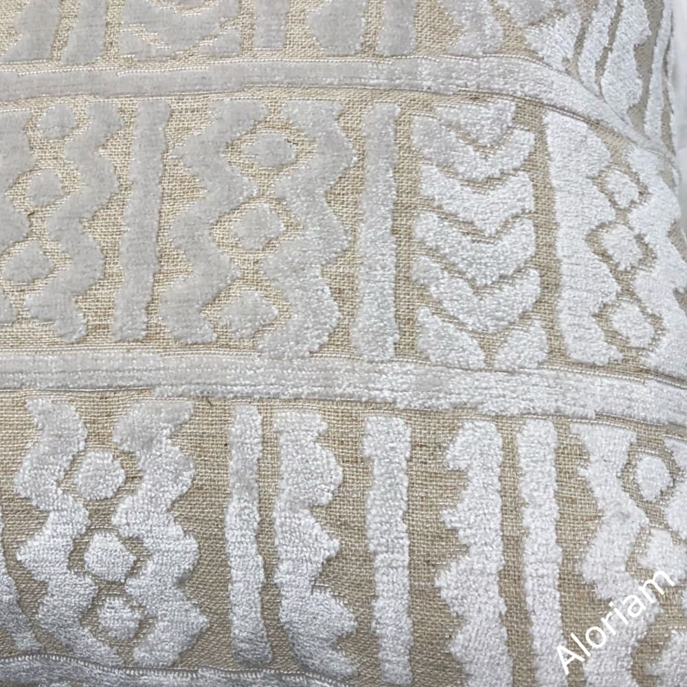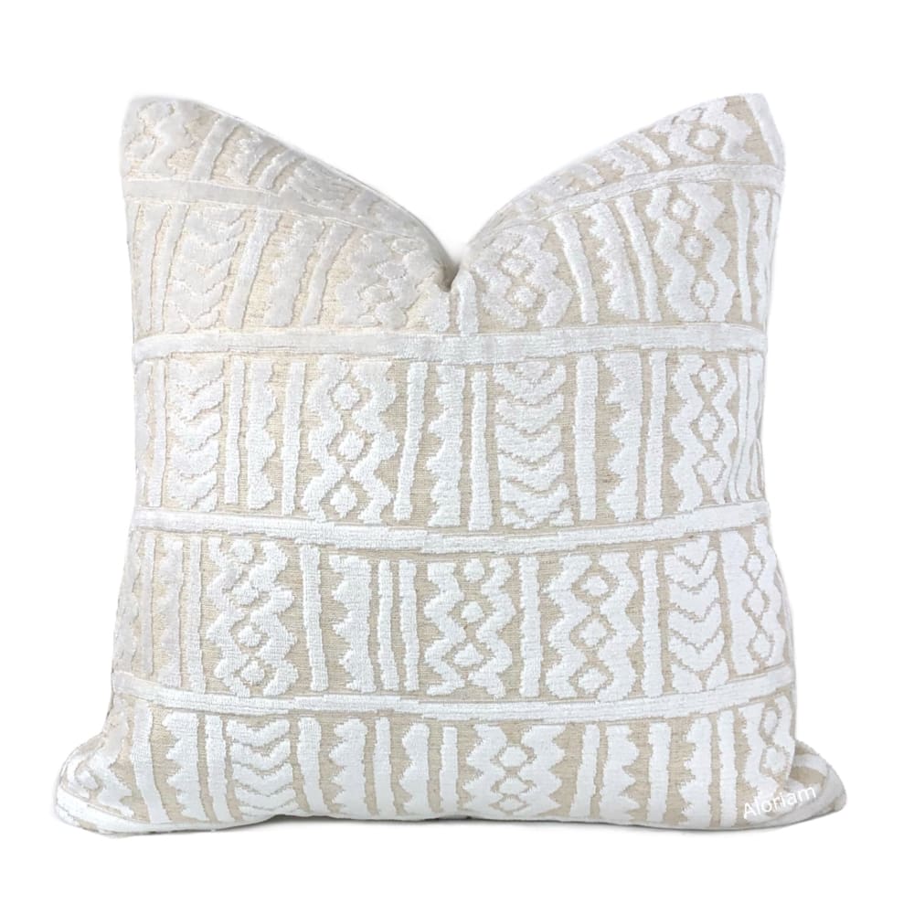 Giza is a warm white cut velvet pillow cover featuring an ethnic inspired design.