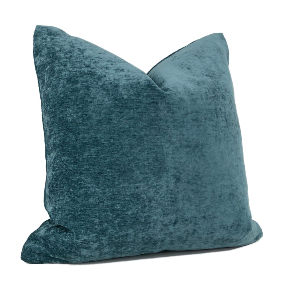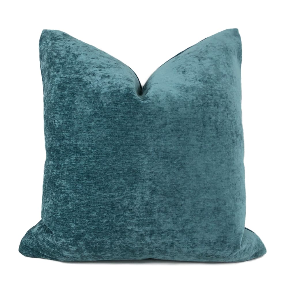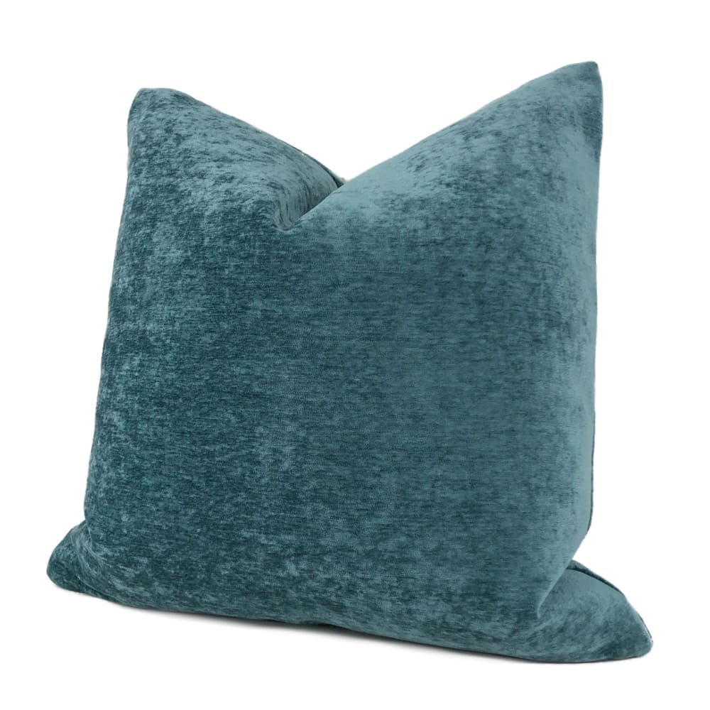 Grafton Lagoon Teal Blue Chenille Velvet Pillow Cover (Fabric by the Yard available)