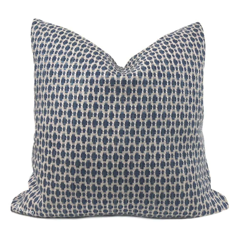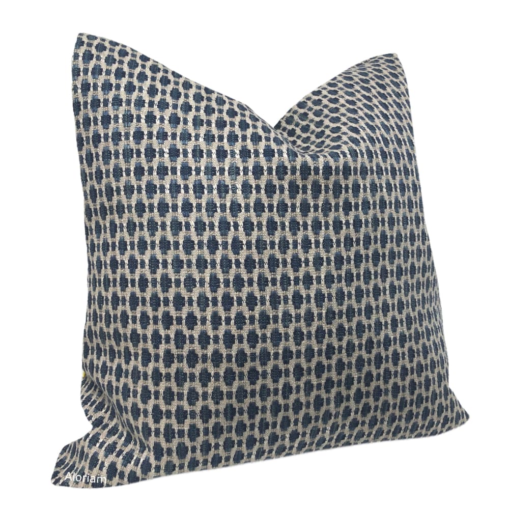 Graham is a blue and beige pillow cover featuring a woven checks design.