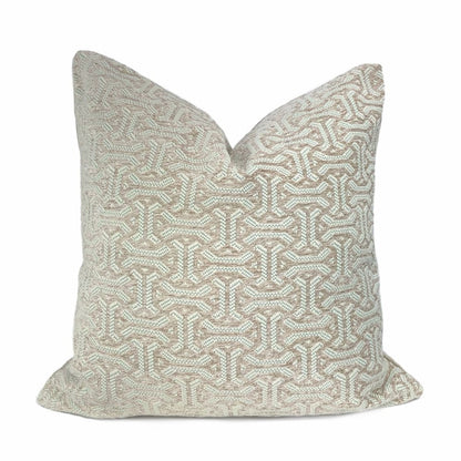 Gramercy I Aqua & Light Taupe Geometric Pillow Cover