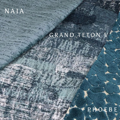 Colorway V is composed of a dynamic blue tonal palette ranging from navy, denim, azure, teal and duck egg blue with off-white accents.