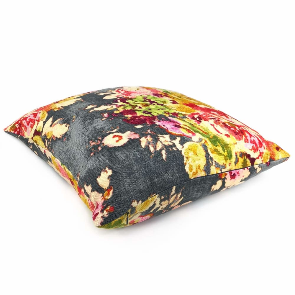 Graphite Gray Pink Aphrodite Floral Cotton Linen Print Pillow Cover