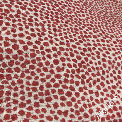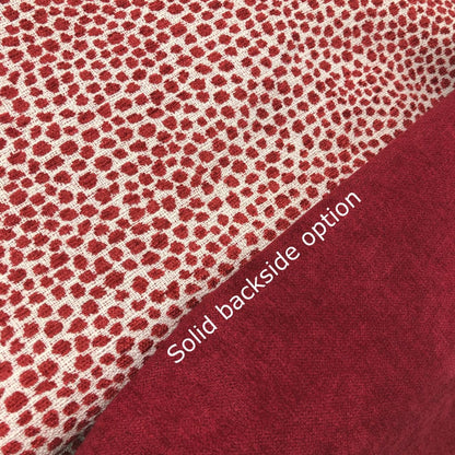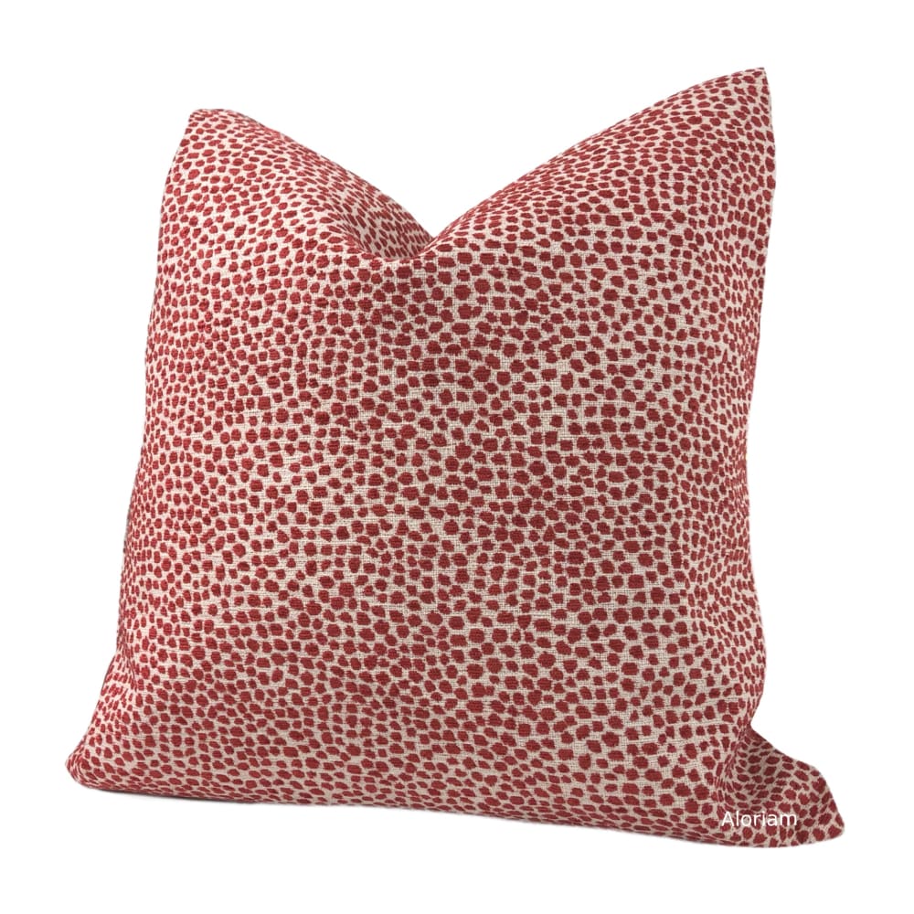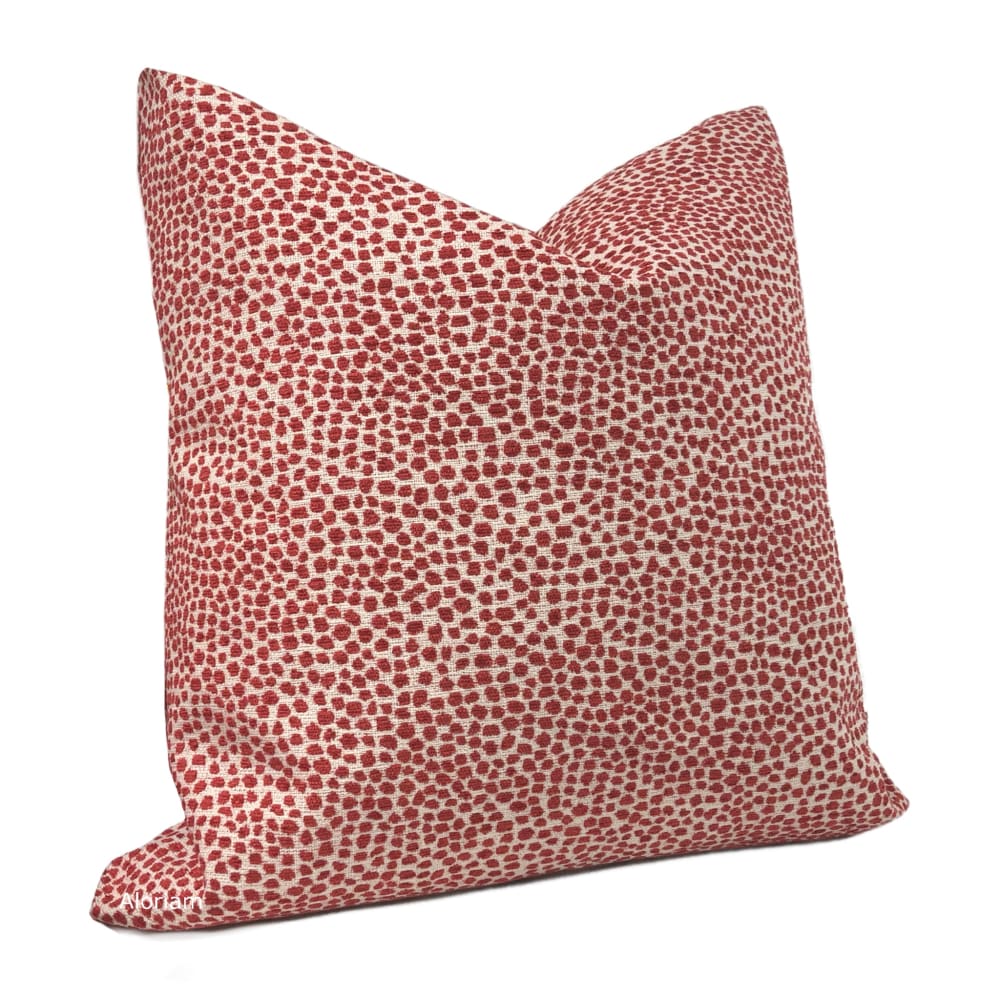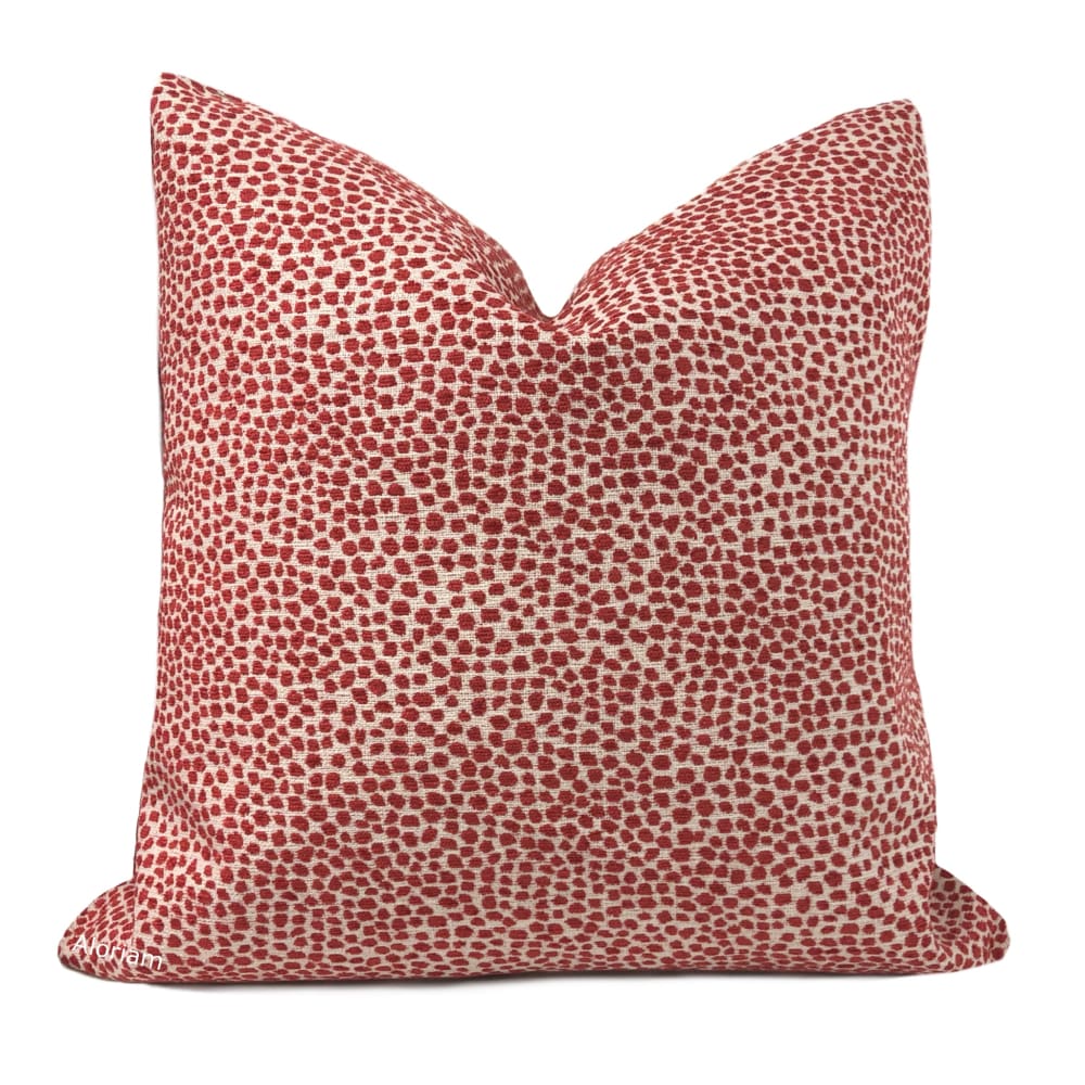 Harper is a chenille pillow cover woven with a small dot pattern in red on an off-cream background.
