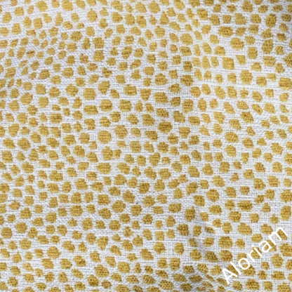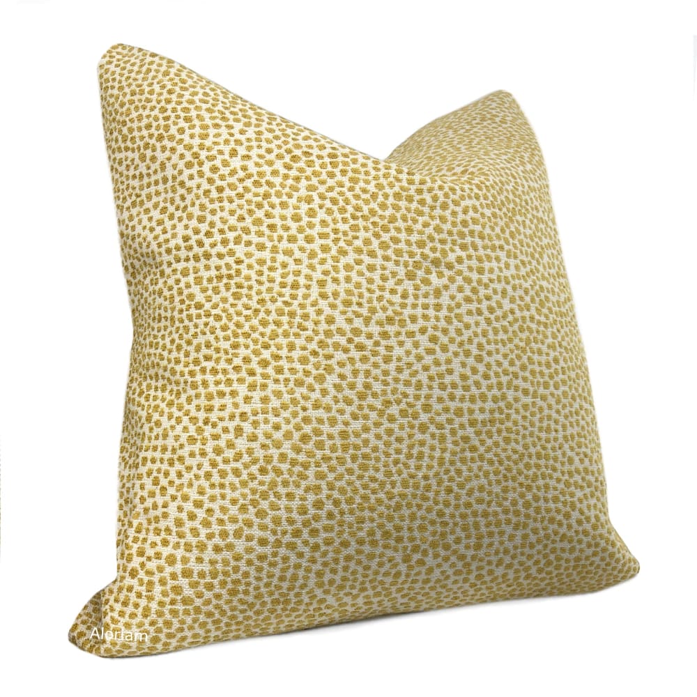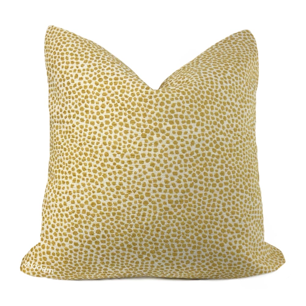 Harper is a chenille pillow cover woven with a small dot pattern in yellow on an off-cream background.