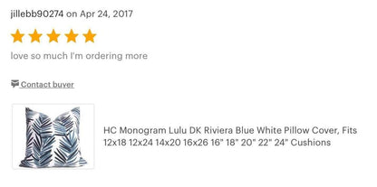 HC Monogram Lulu DK Riviera Blue White Pillow Cover