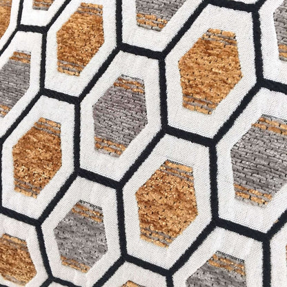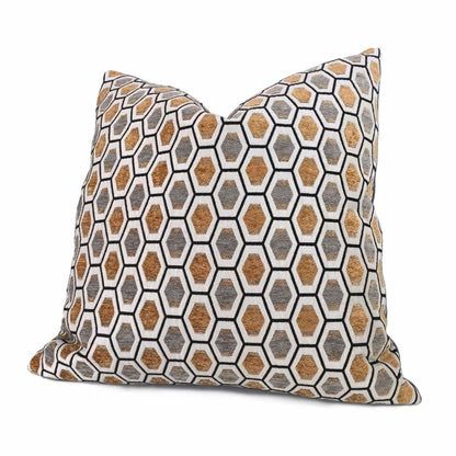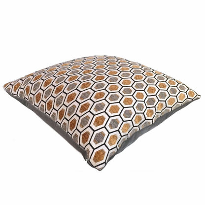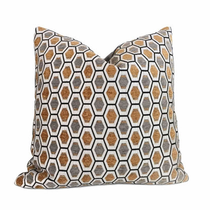 Honeycomb Geometric Gray Off-white Orange-Gold Chenille Velvet Pillow Cover