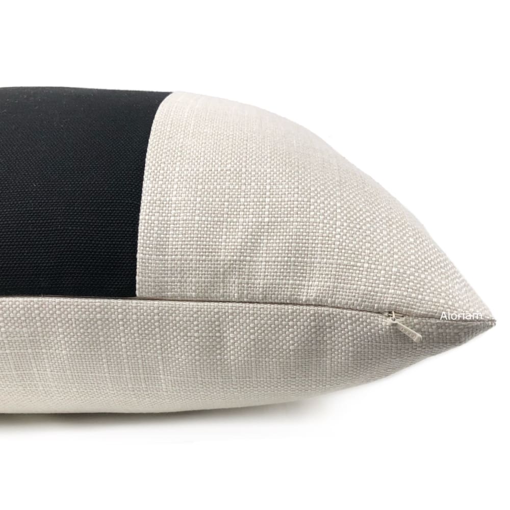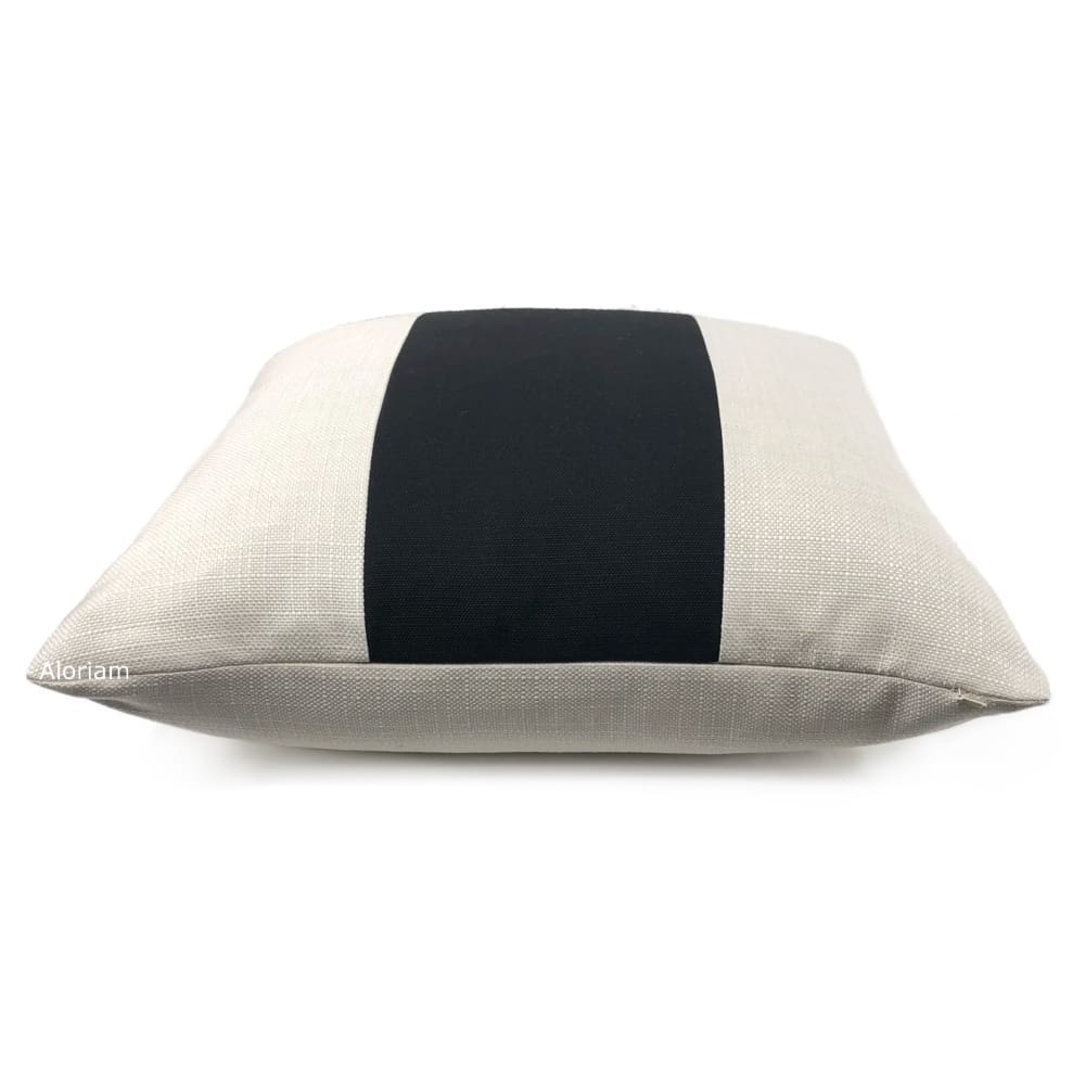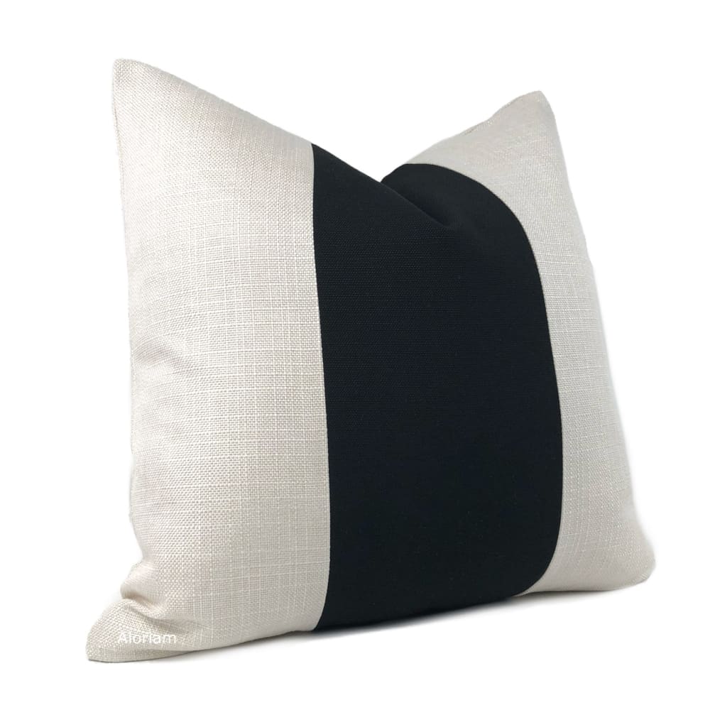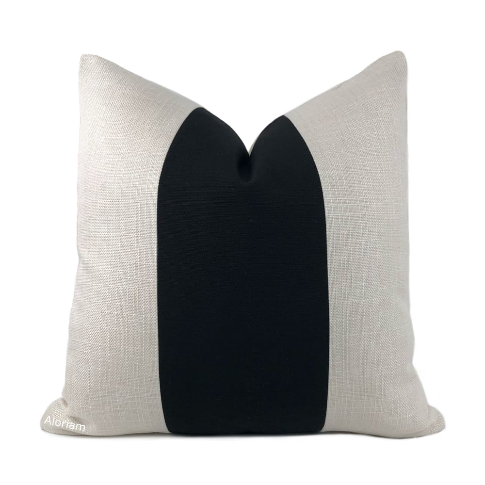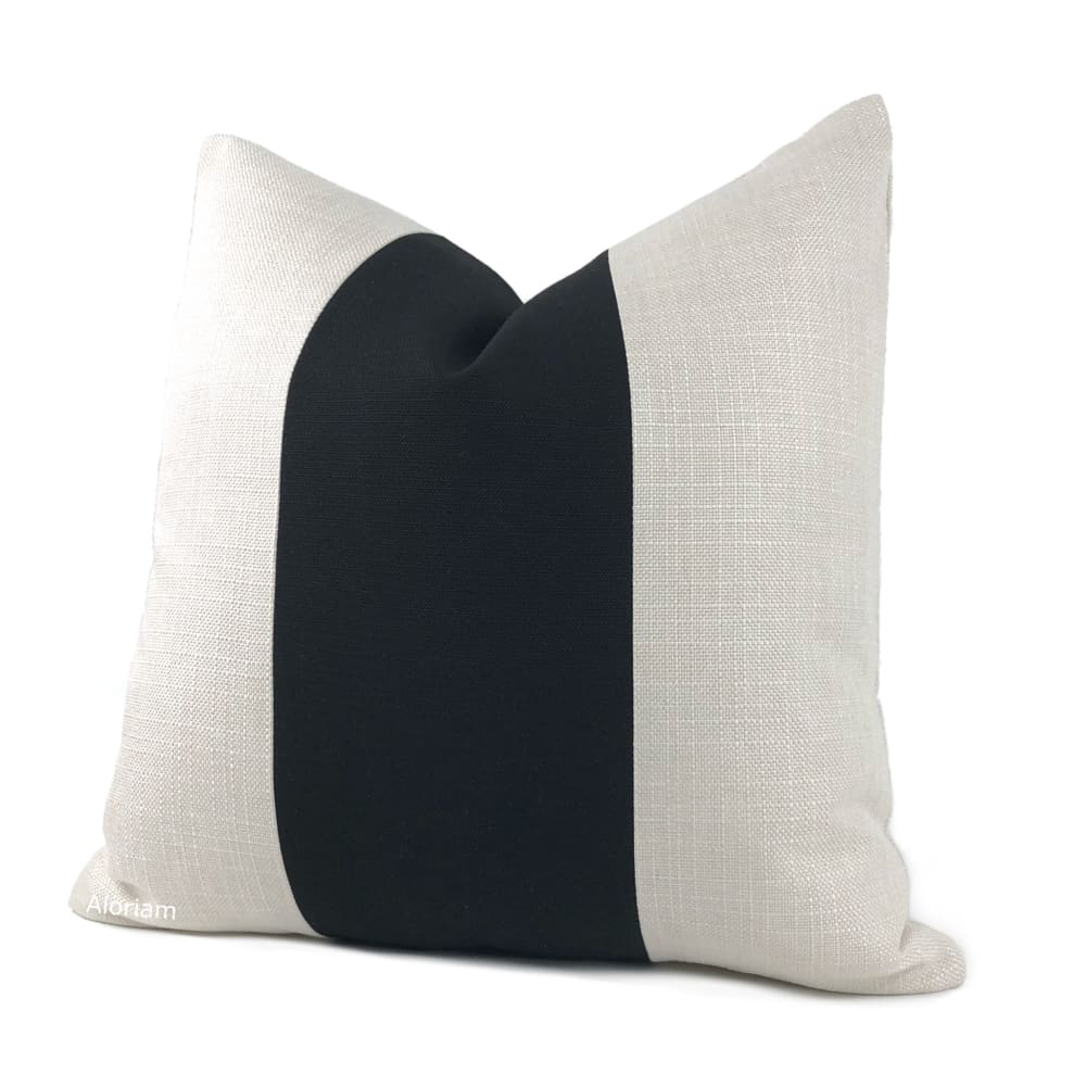 A wide black panel flanked by creamy white bands on either side make this pillow cover a perfect casual addition to any contemporary interior.