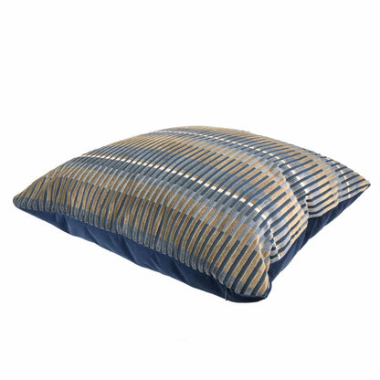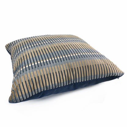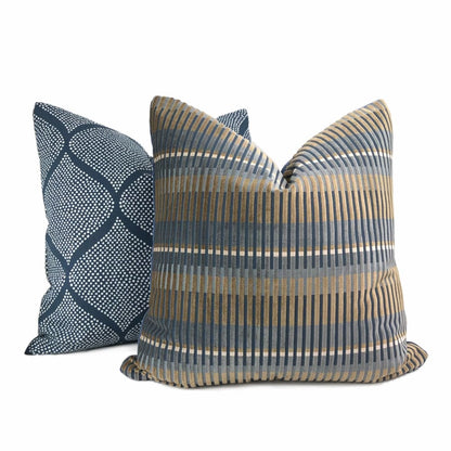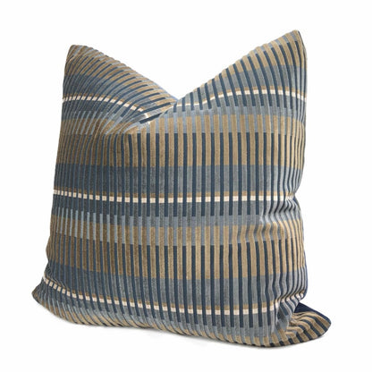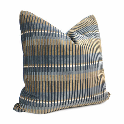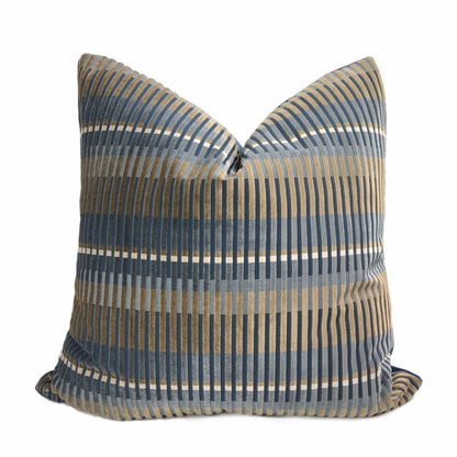 (CLEARANCE) Humbolt Mid-Century Modern Blue Brown Velvet Stripe Pillow Cover