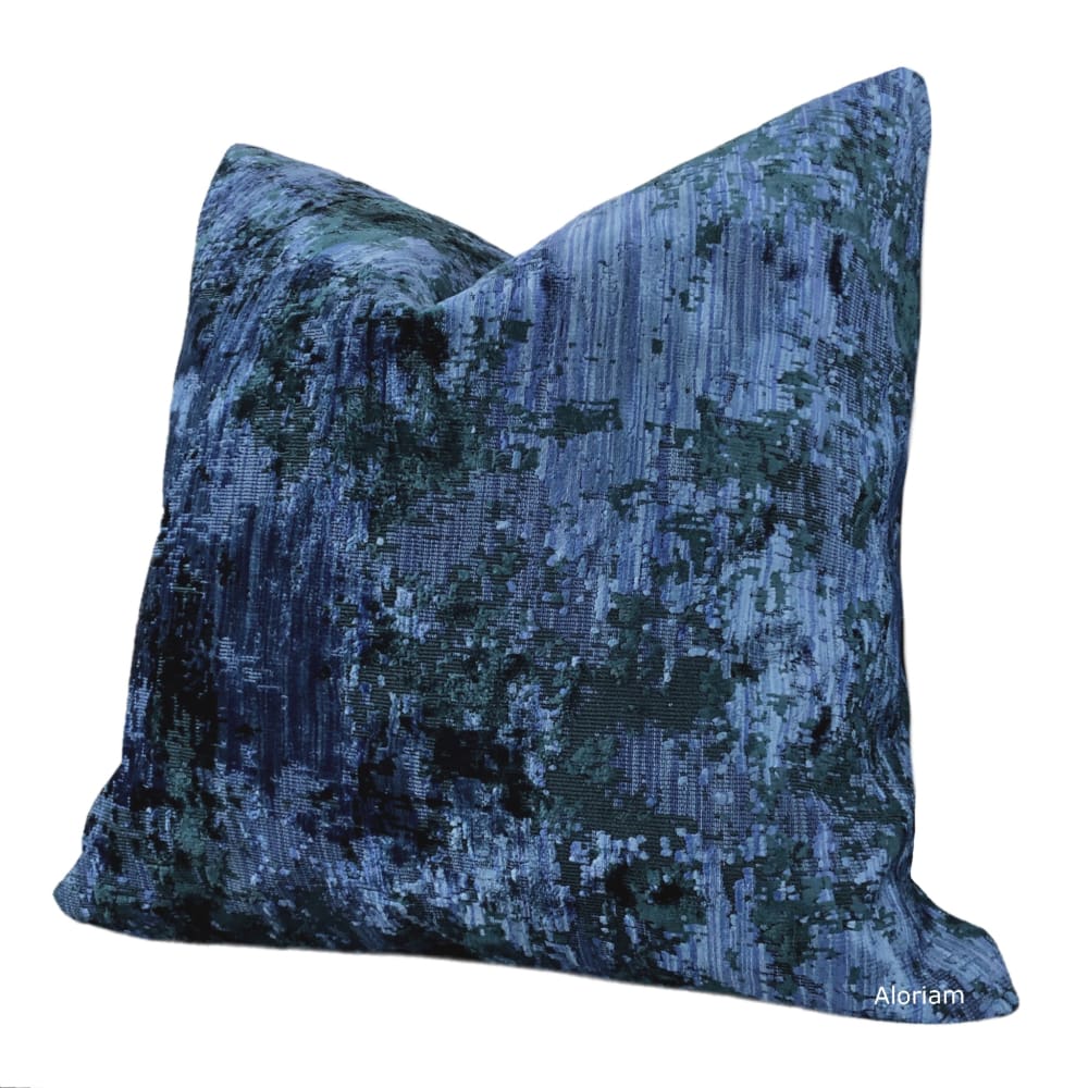 Ingram Dark Blue Green Abstract Velvet Pillow Cover