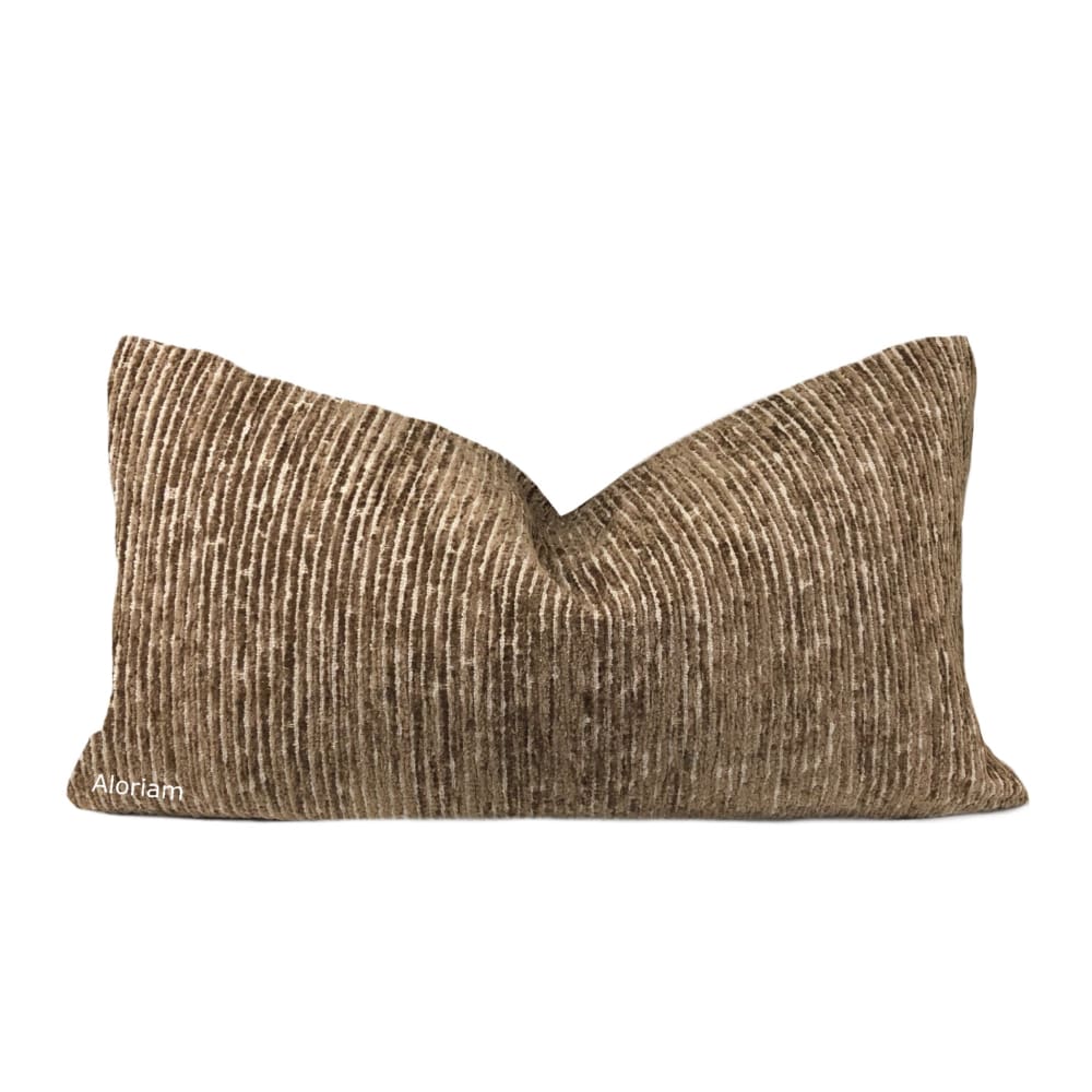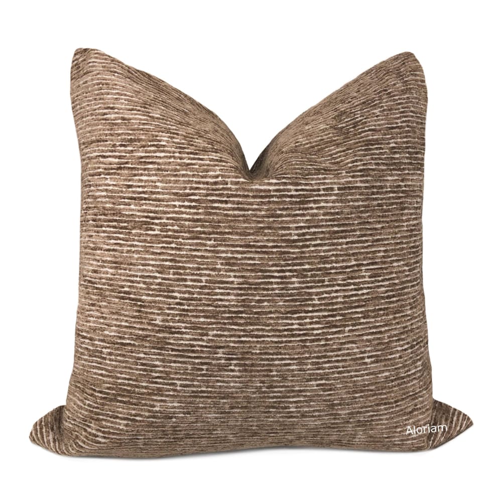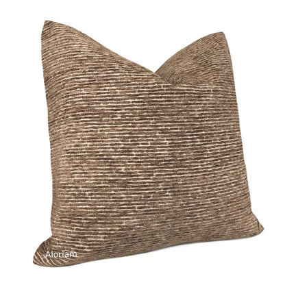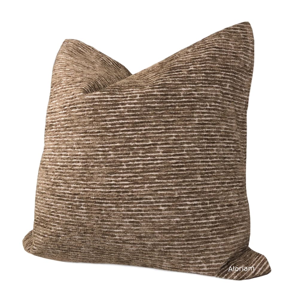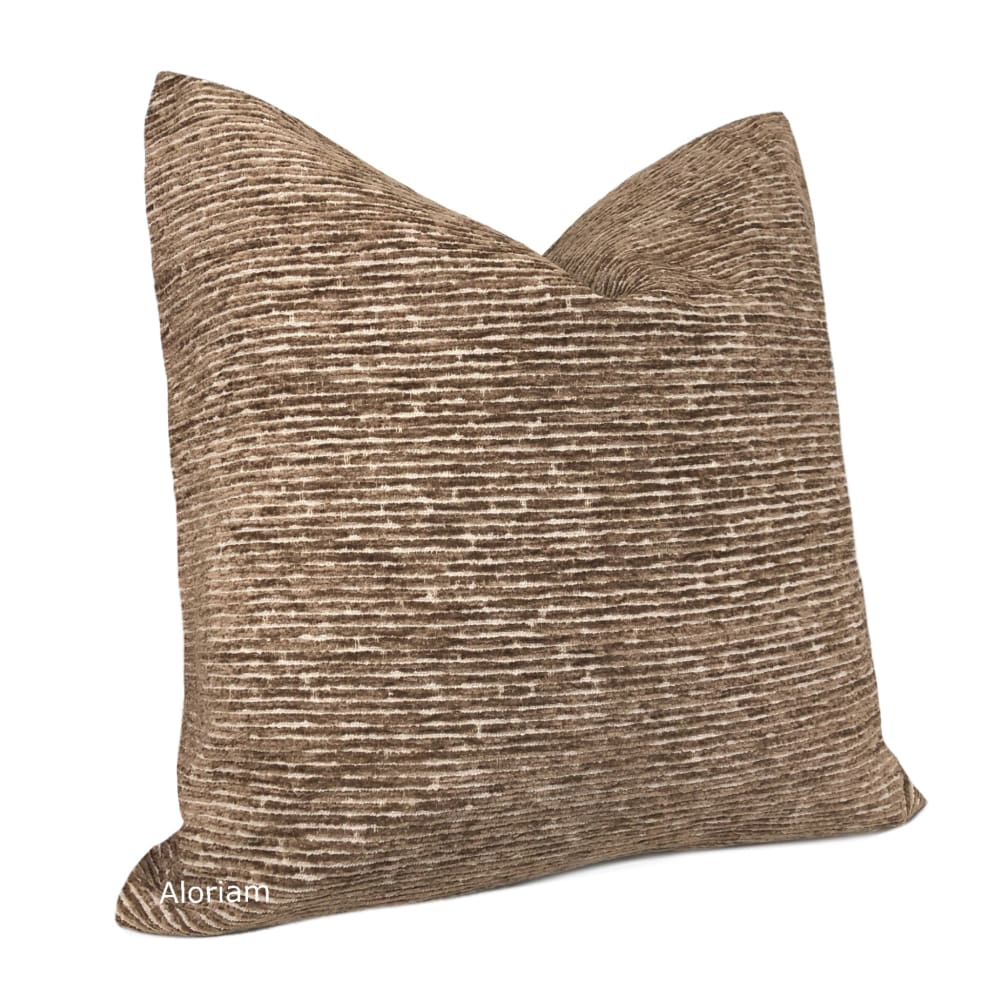 The Jackson pillow cover features a corded stripe pattern woven in soft textured chenille in a rich chocolate brown color.