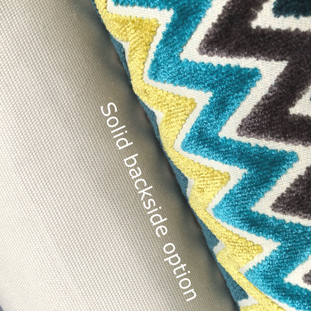Jeremy Teal Blue Yellow Turquoise Charcoal Chevron Velvet Pillow Cover (Fabric by the Yard available)