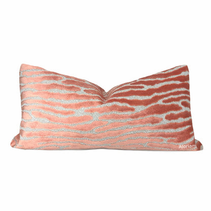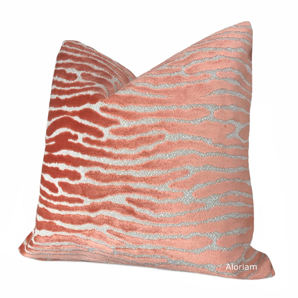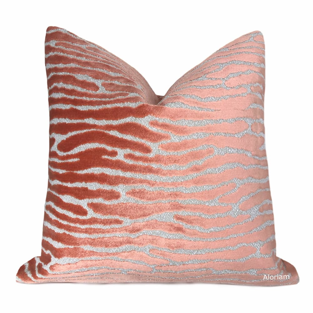 Jocelyn Coral Pink Wavy Cut Velvet Pillow Cover