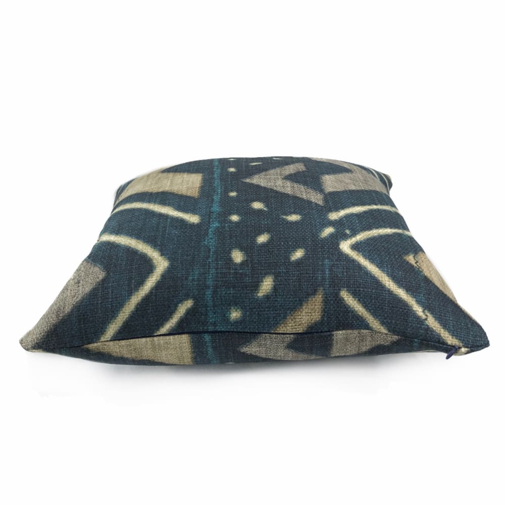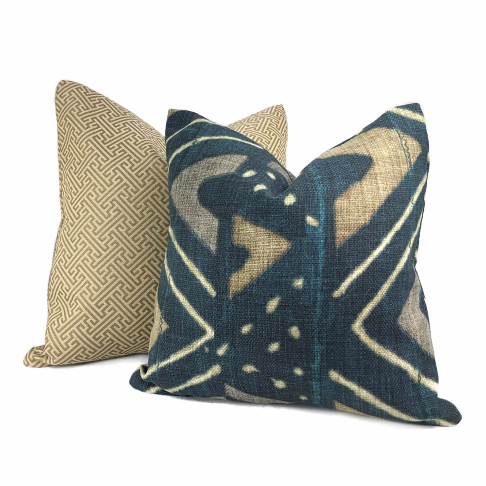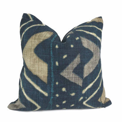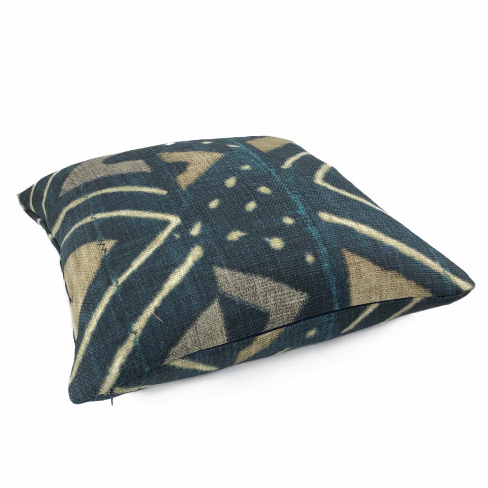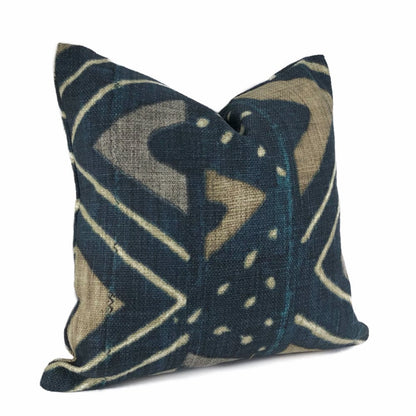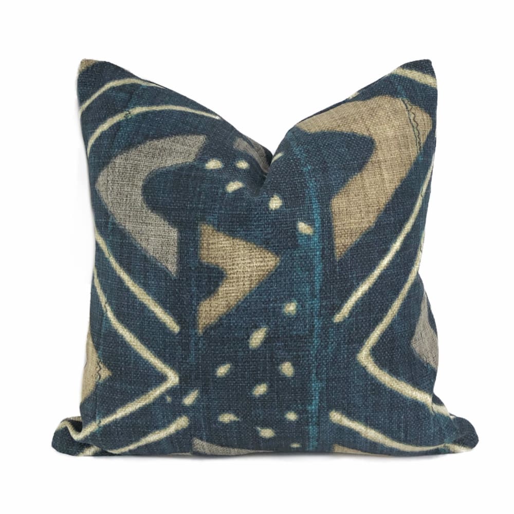 The Jula pillow cover features an eye catching African tribal design reminiscent of Mali mudcloth. Printed on heavyweight basketweave cotton in colors of camel beige and dark navy blue, the ethnic design is a stylish additional to any contemporary or eclectic home interior.