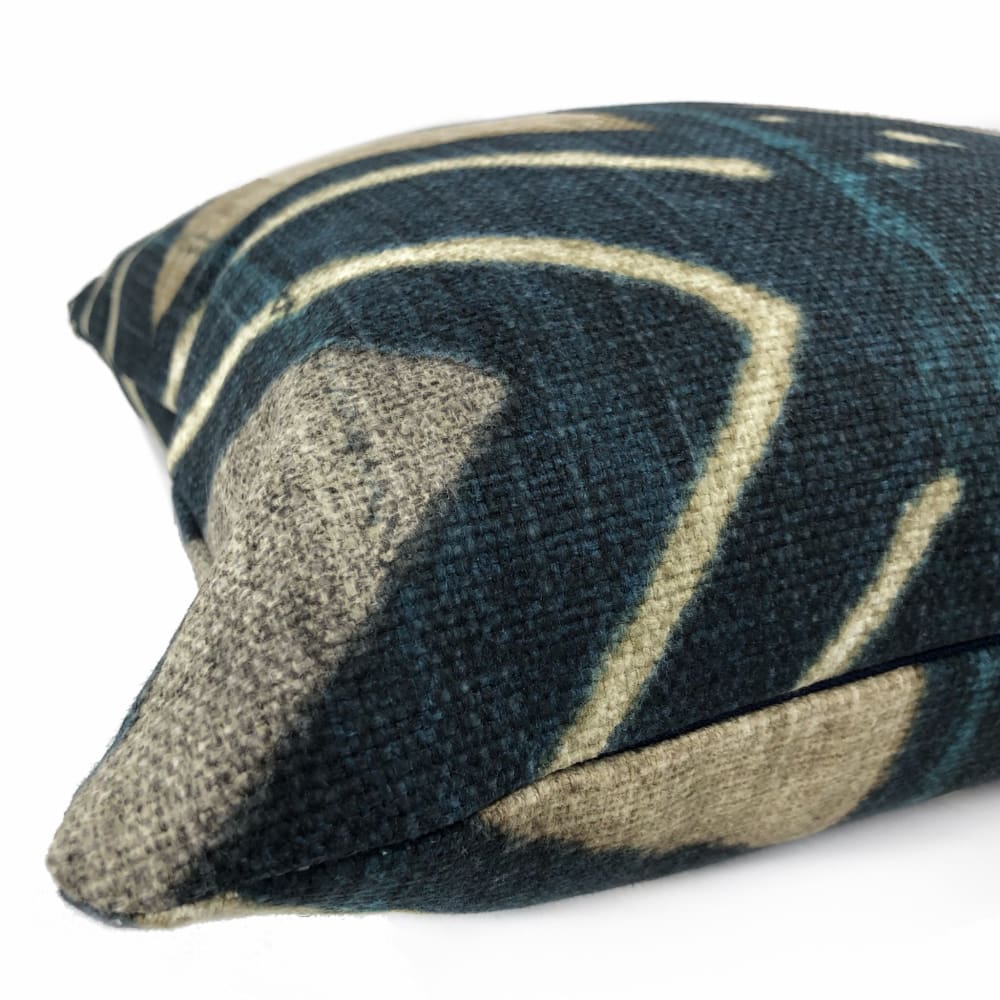 Offered with the pattern fabric on both sides or with a solid navy backside. Photographed on 17x17 cover (filled with 18x18 insert).