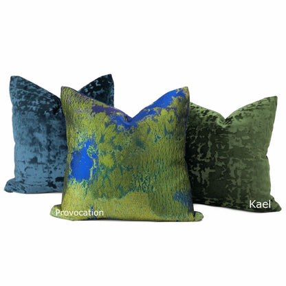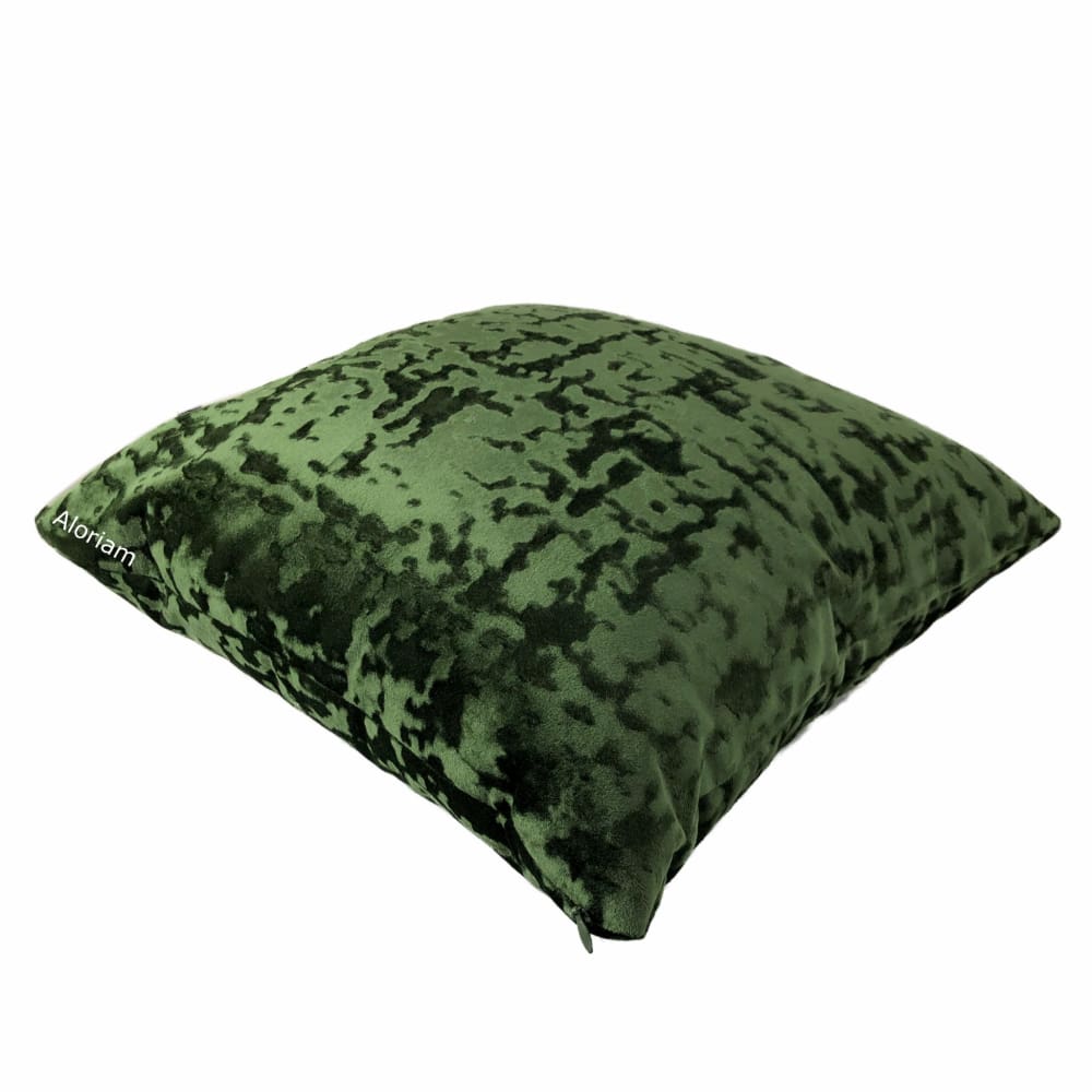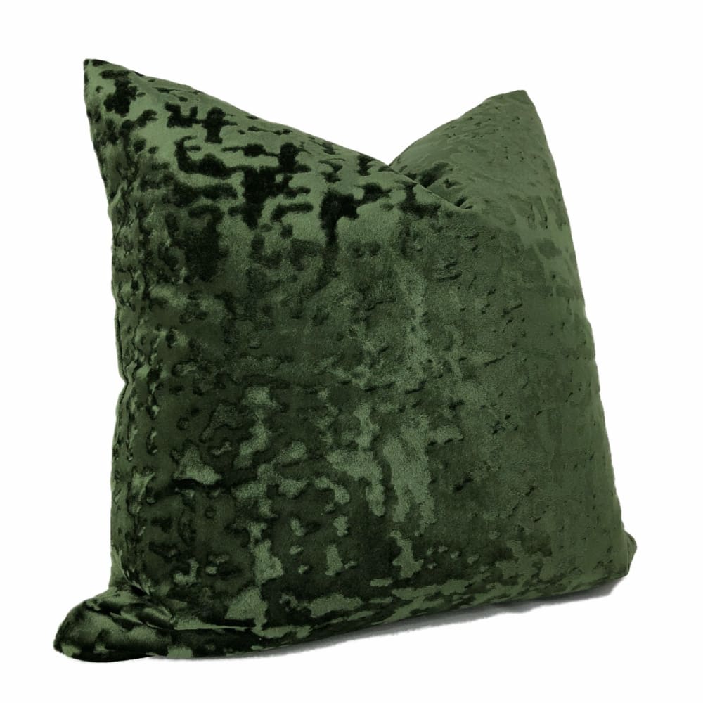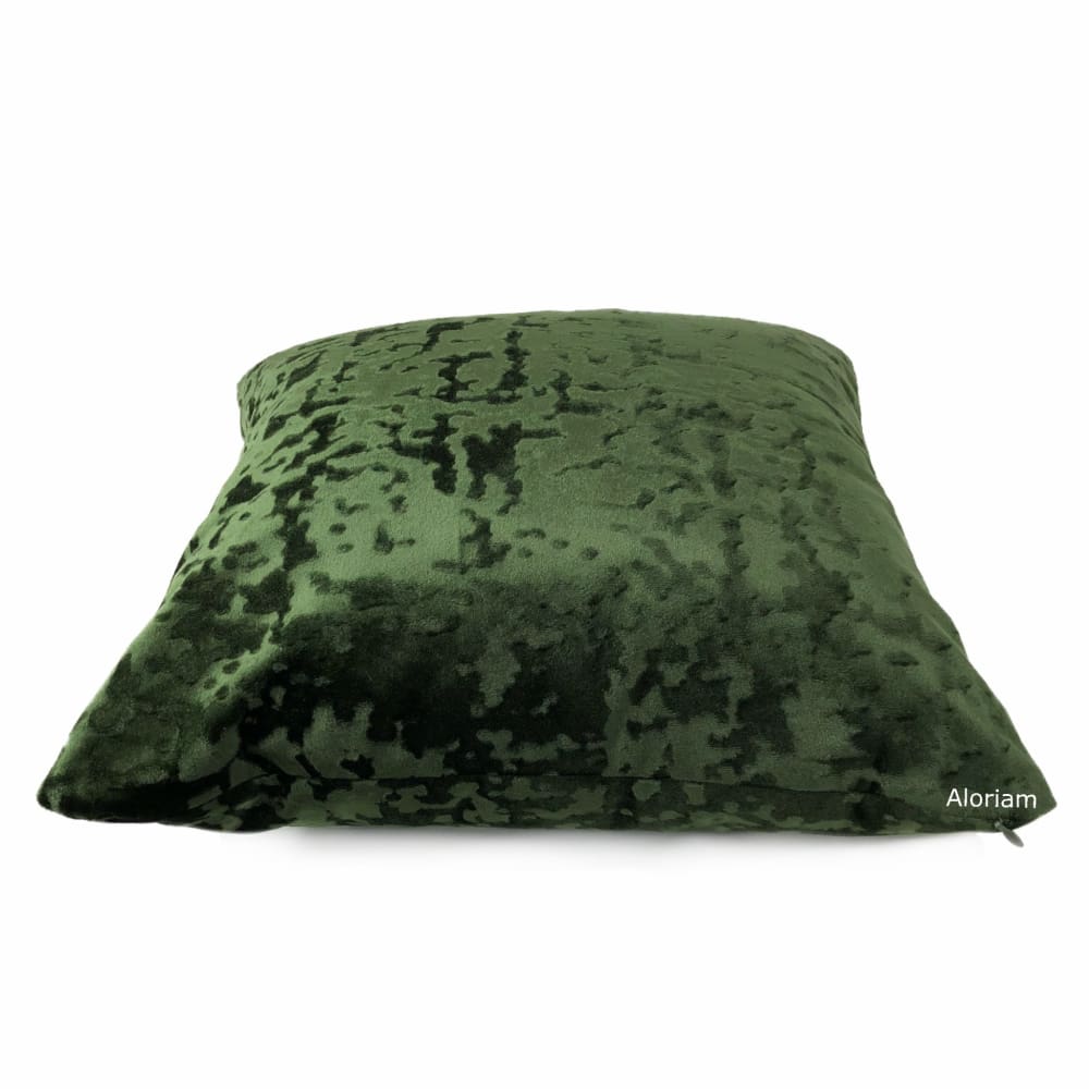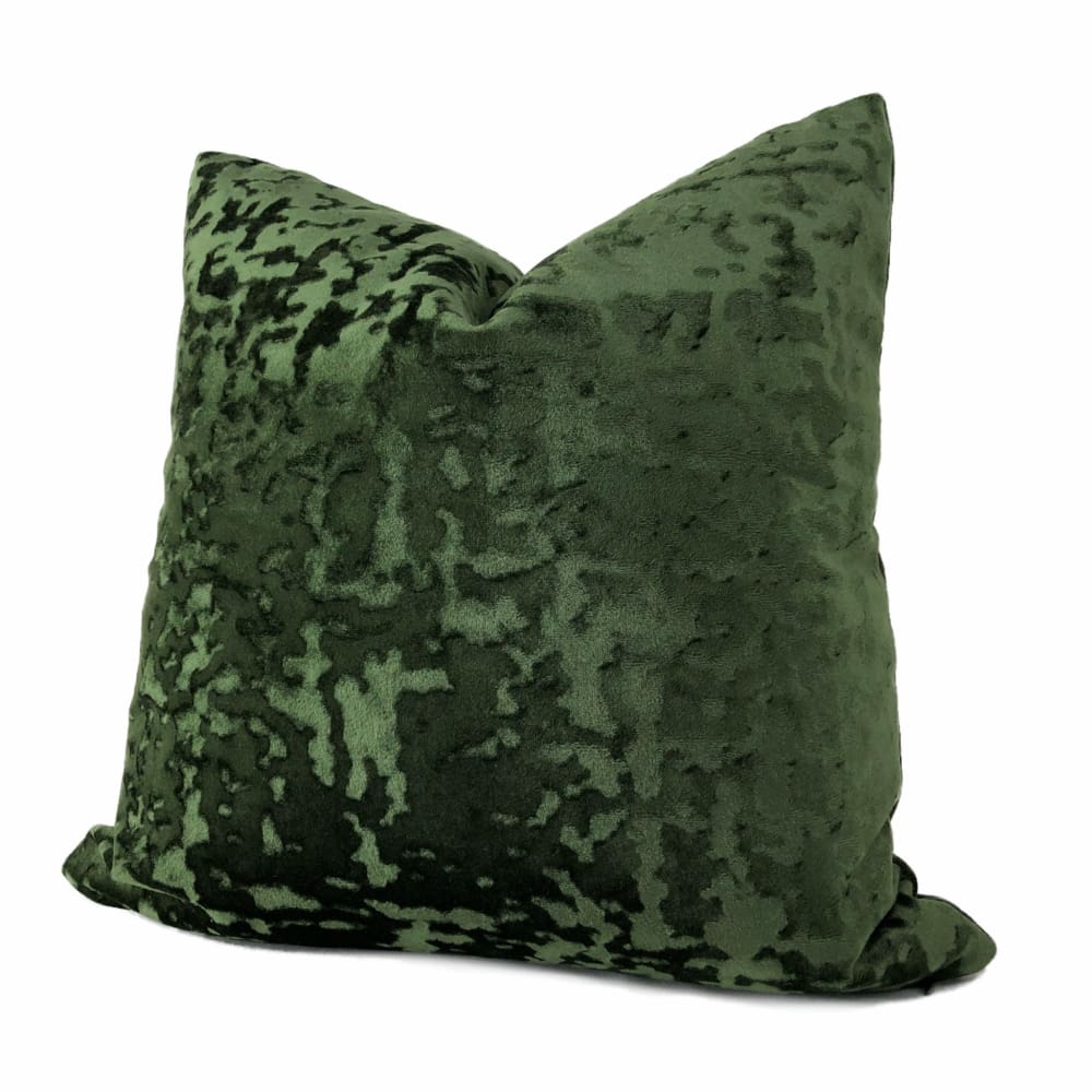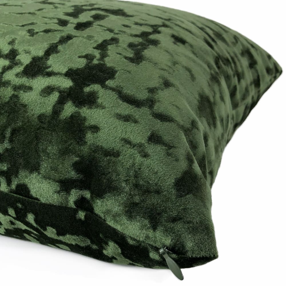 Kael is a dark green velvet pillow cover with a tonal distressed finish. The abstract pattern drifts from light to dark as you change your viewing angle, heightening visual interest and movement in the overall design. Perfect for any contemporary interior, this stylish polyester velvet pillow cover has a soft hand and is wonderful to snuggle up to.