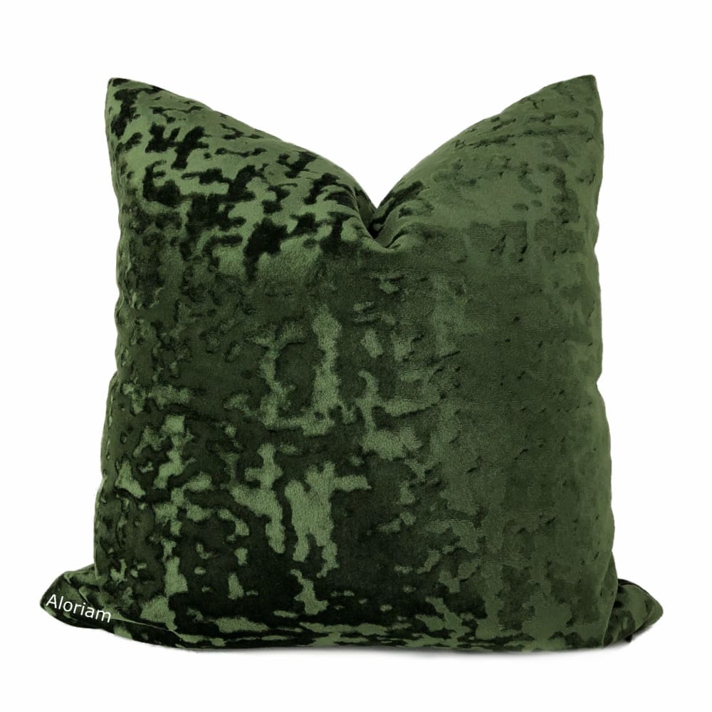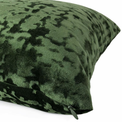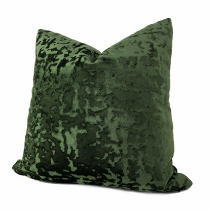 Kael I Dark Green Abstract Distressed Tonal Velvet Pillow Cover