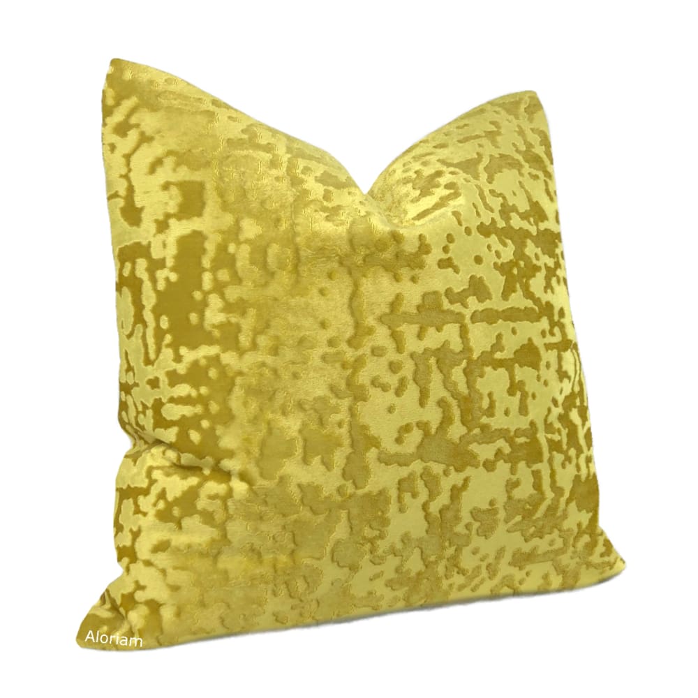Kael II Sunflower Yellow Abstract Distressed Tonal Velvet Pillow Cover