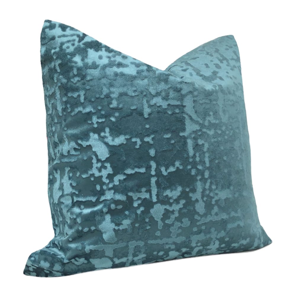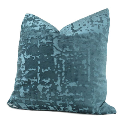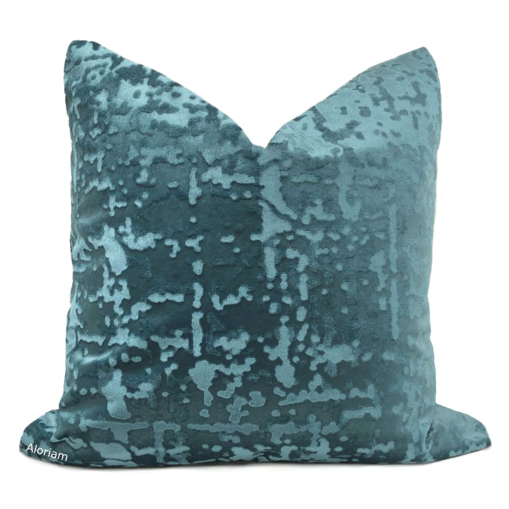 Kael II Lagoon Blue Teal Green Abstract Distressed Tonal Velvet Pillow Cover
