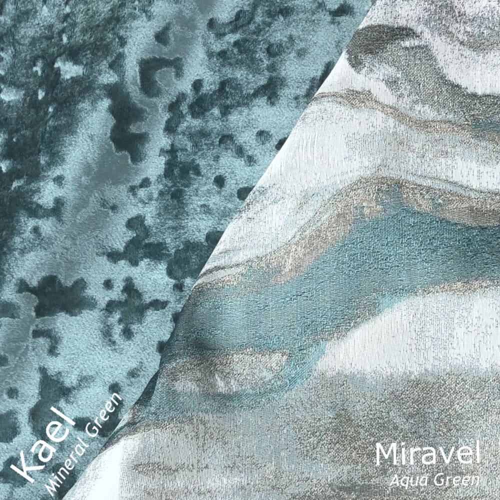 The Kael design is available in more colors. Please note that the Kael I fabric is slightly heavier in weight compared to the Kael II version, but the pattern is the same. Please order fabric samples to see which one you like better.