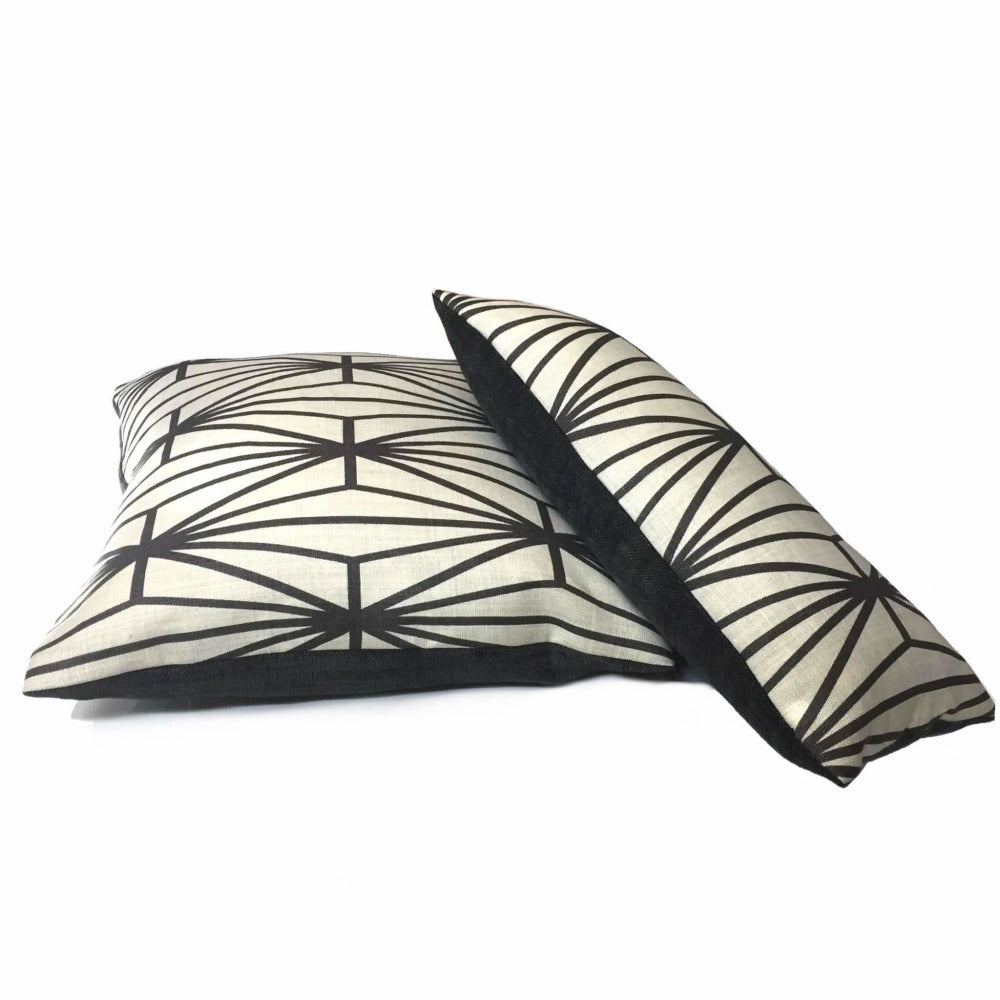 (CLEARANCE) Kelly Wearstler Katana Ebony Geometric Lee Jofa Groundworks Designer Linen Pillow Cover