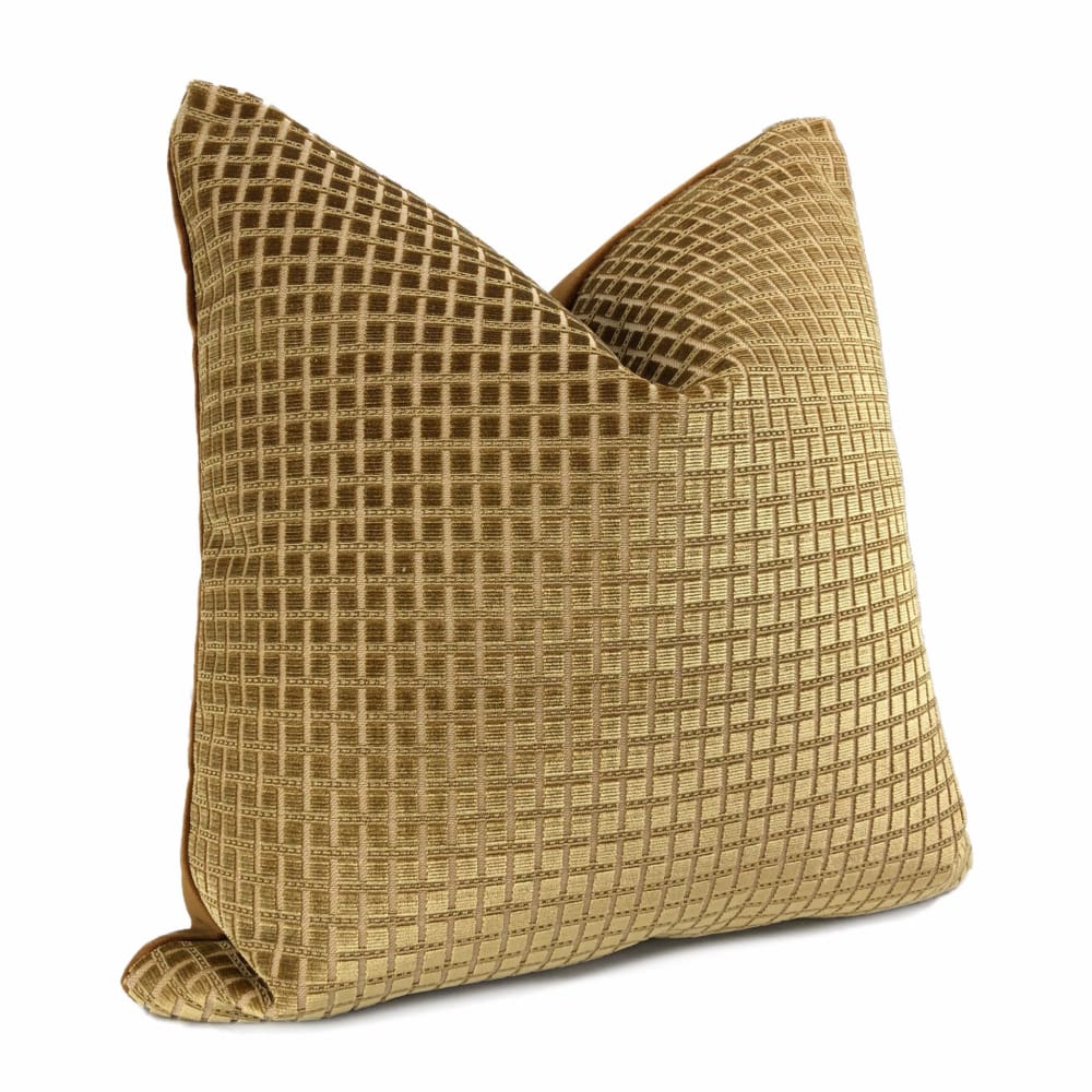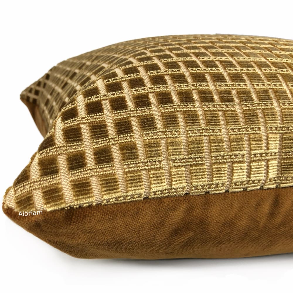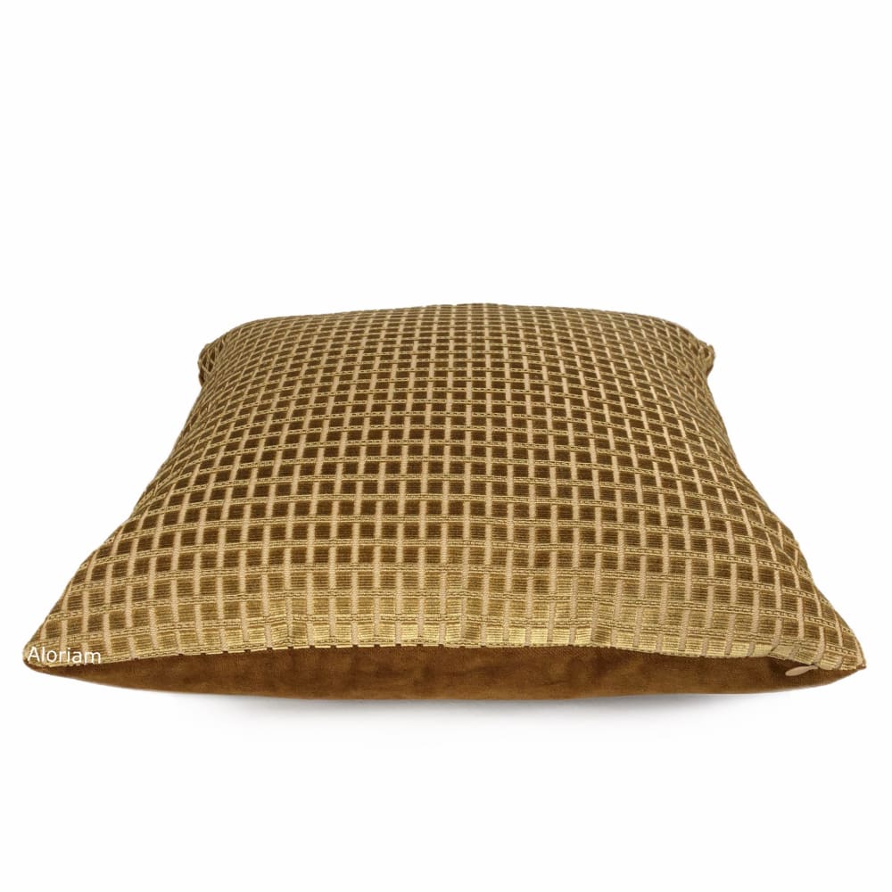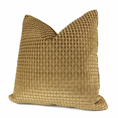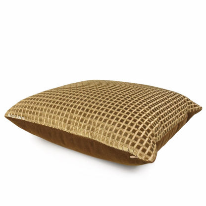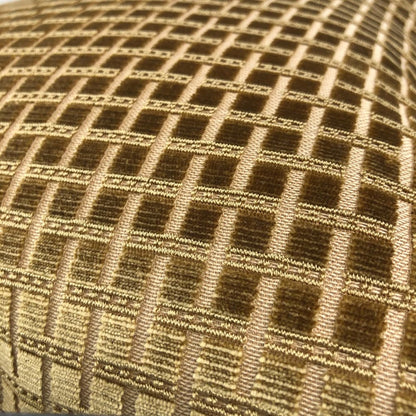 Kensington Honey Brown Small Checks Silk Velvet Pillow Cover (Fabric by the Yard available)