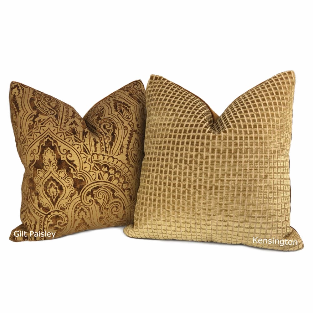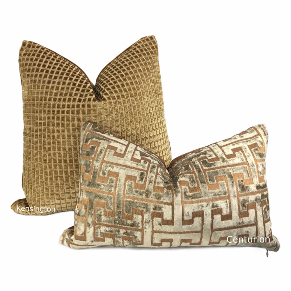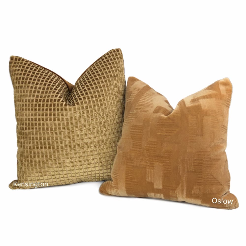 Kensington Honey Brown Small Checks Silk Velvet Pillow Cover (Fabric by the Yard available)