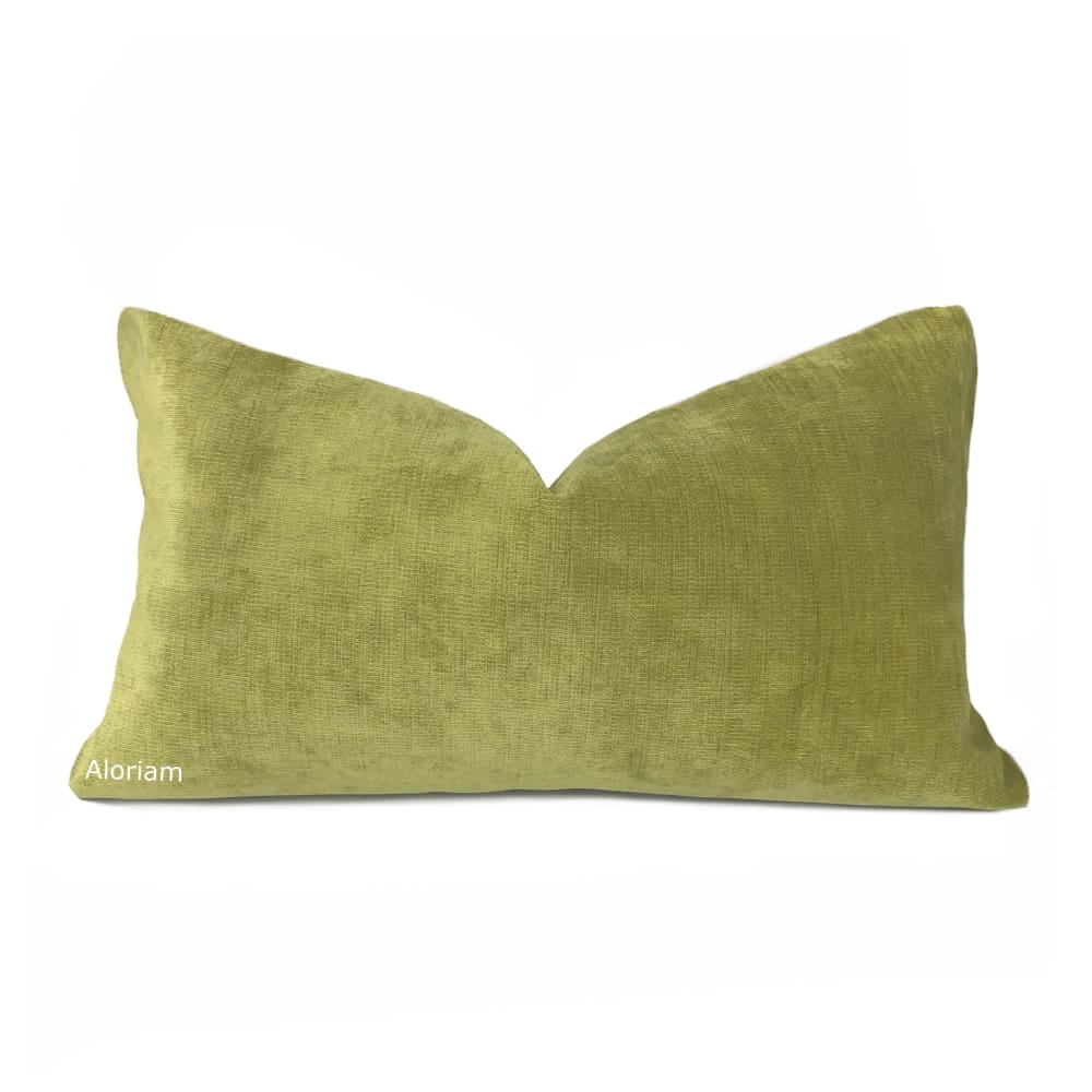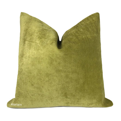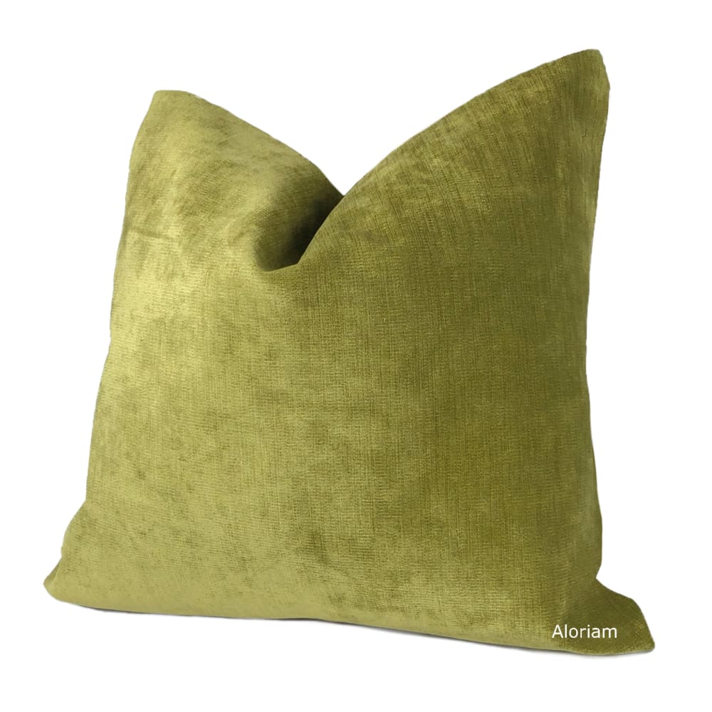 Kent is a solid green chenille fabric with a soft plush texture. The yellowish-green color falls within the light olive-dark lime green range. This high quality medium weight chenille fabric has a soft hand and a gorgeous depth of color.
