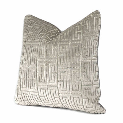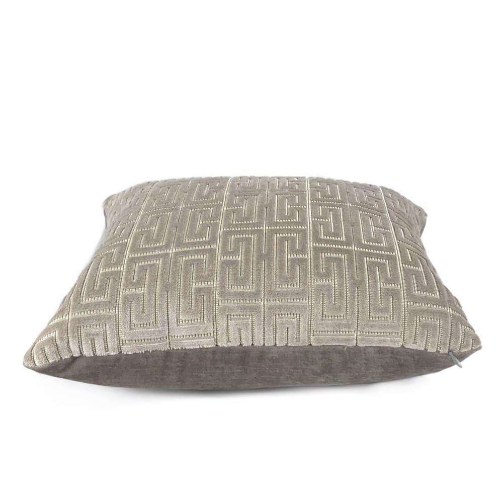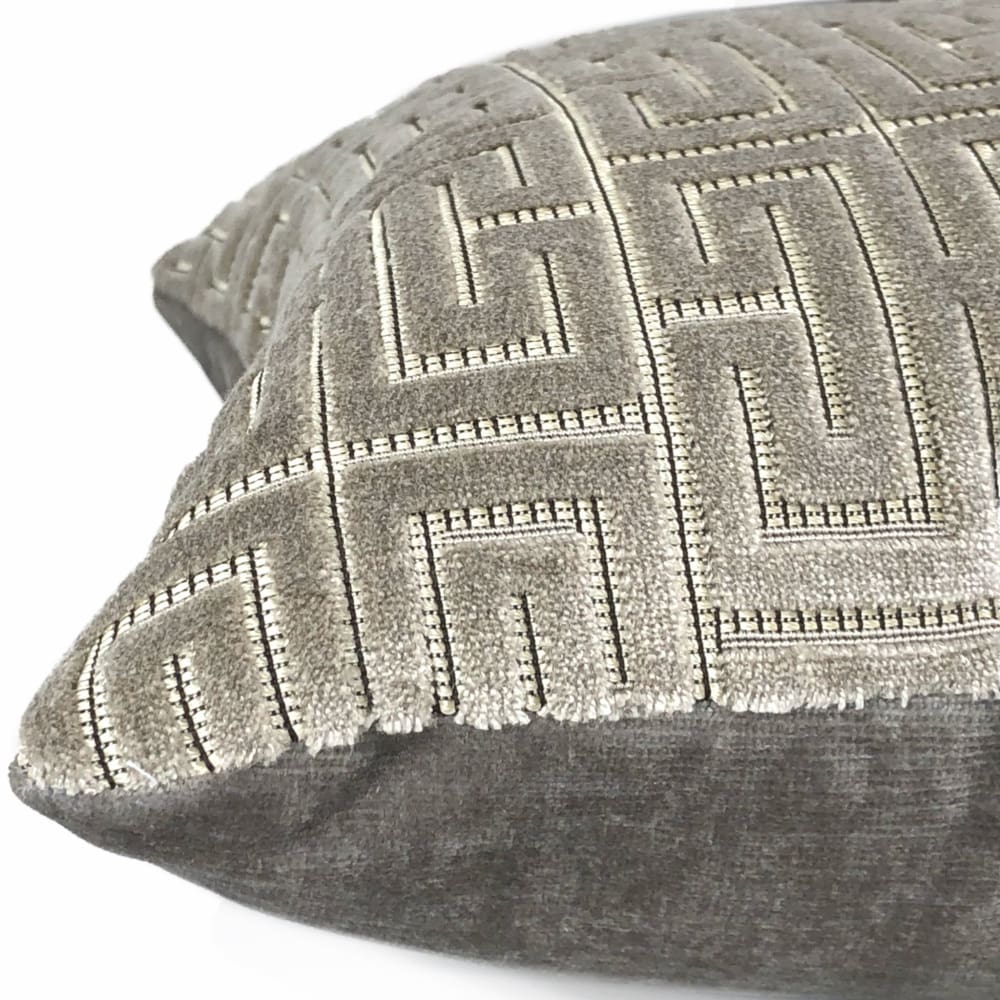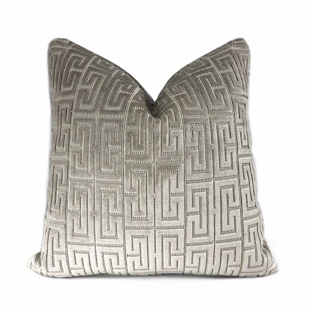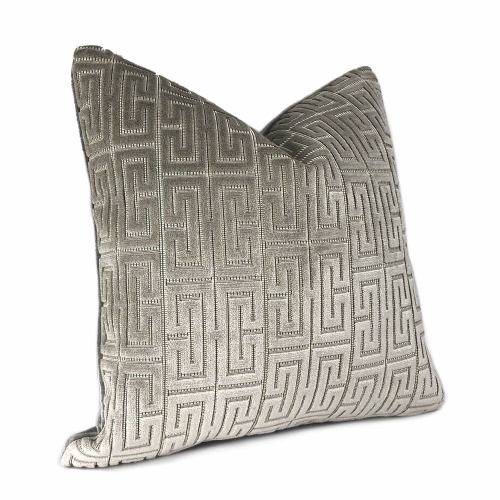 Knossos Mineral Gray Greek Key Cut Velvet Pillow Cover