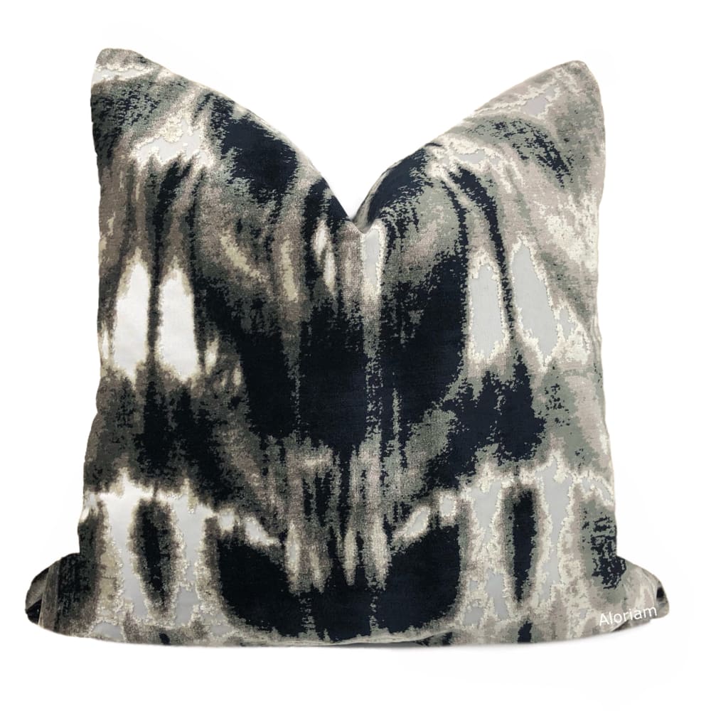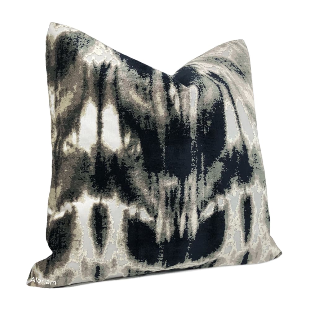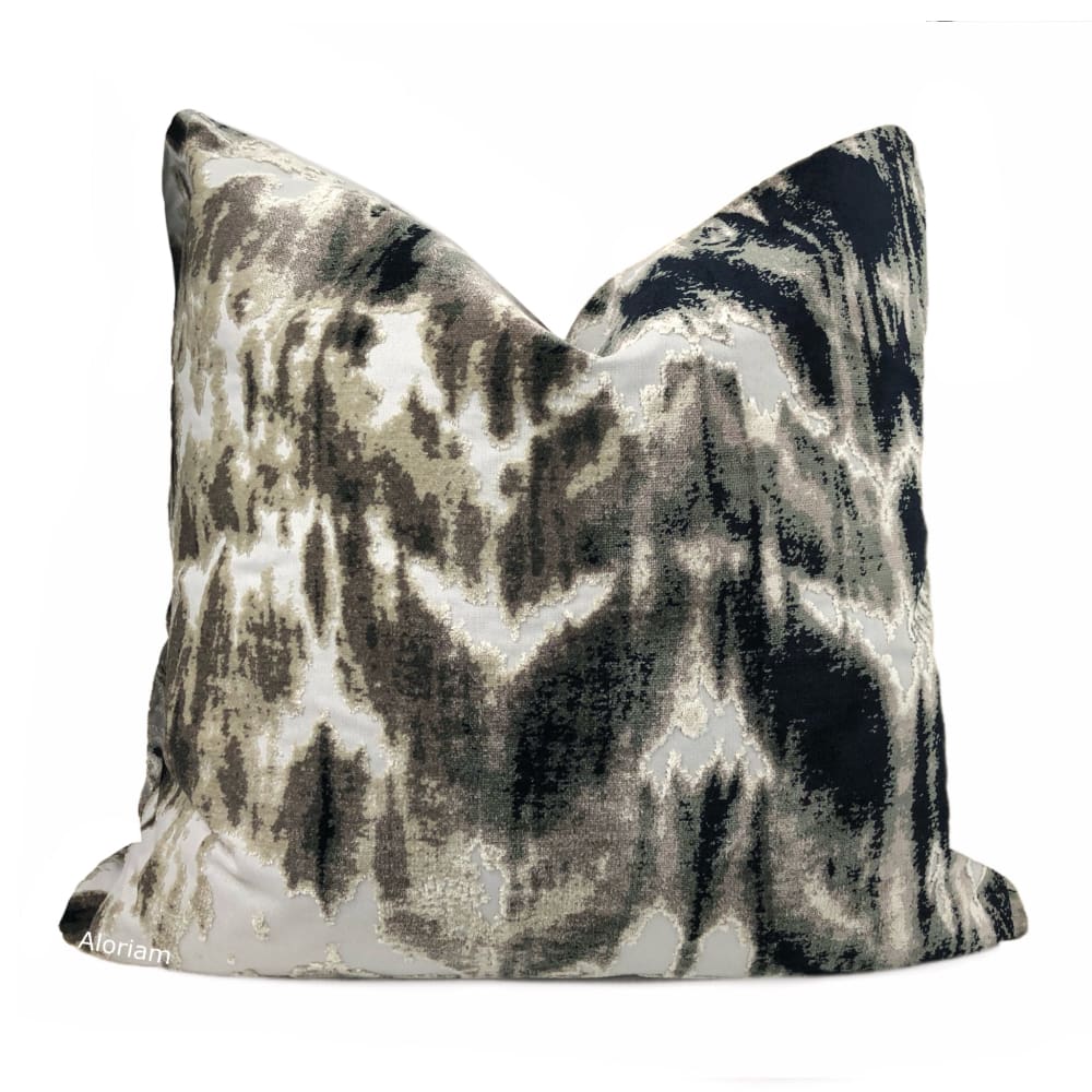 Kodiak II Black Gray Taupe Abstract Velvet Pillow Cover
