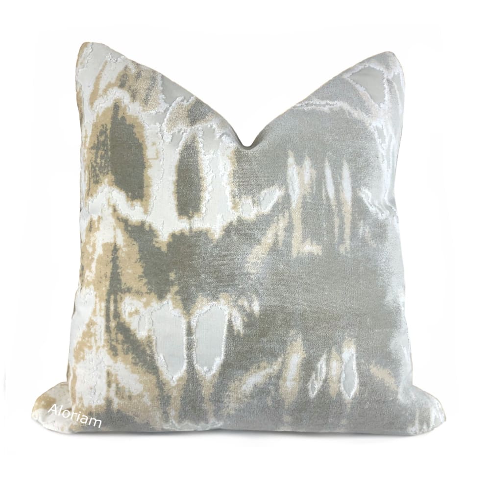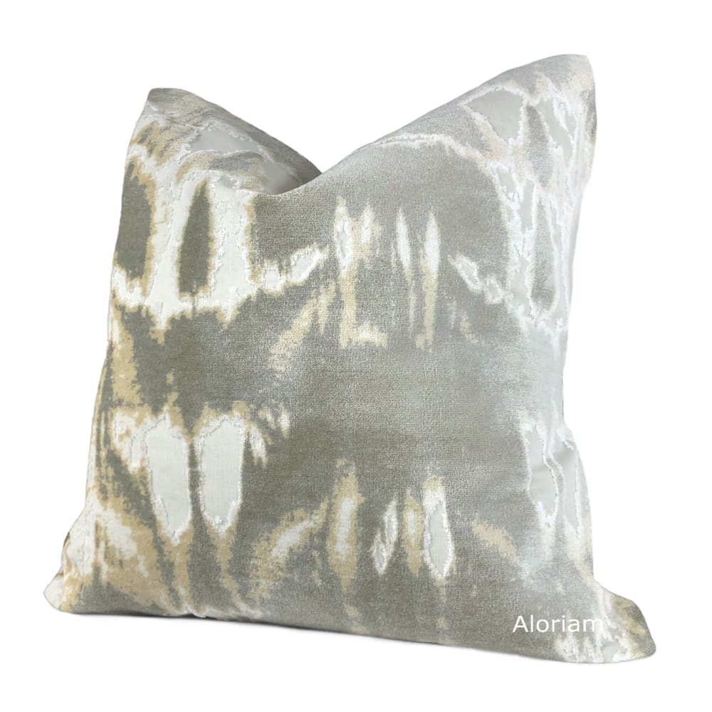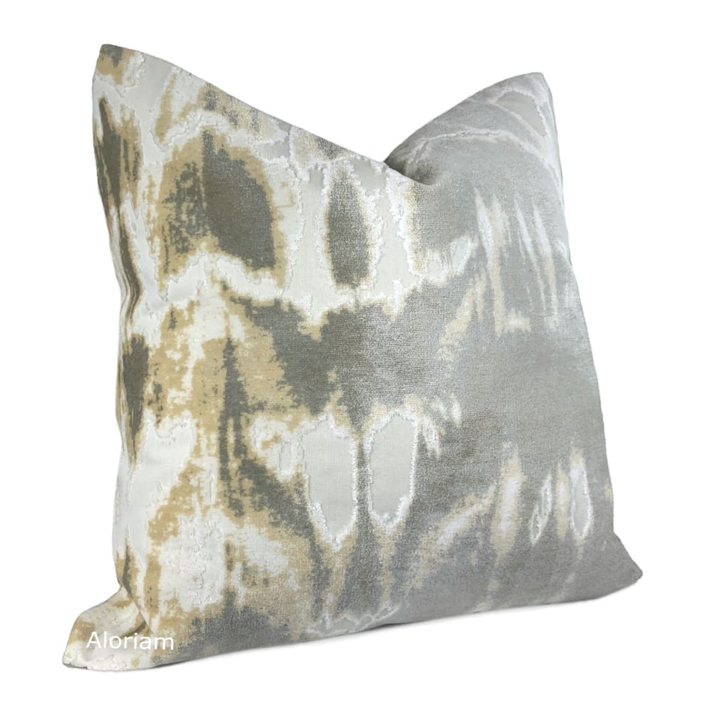 Kodiak III Cream Sand Gray Taupe Abstract Velvet Pillow Cover (Fabric by the Yard Available)
