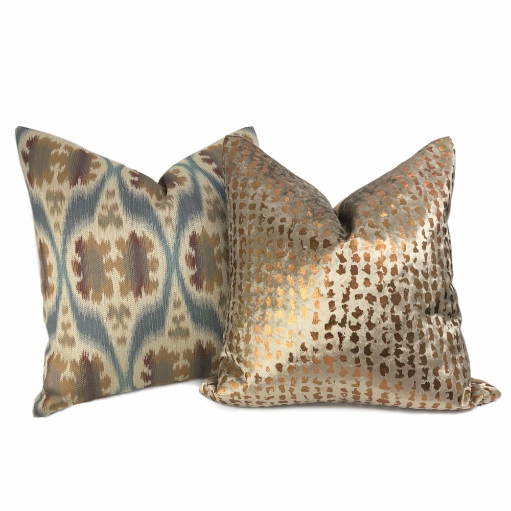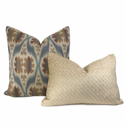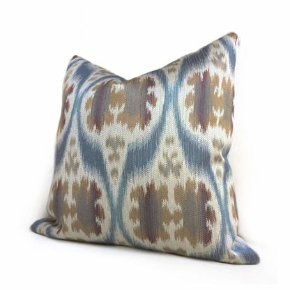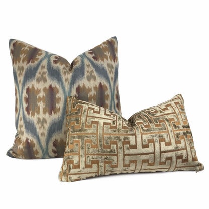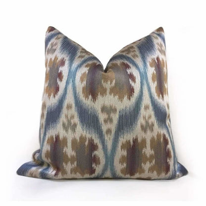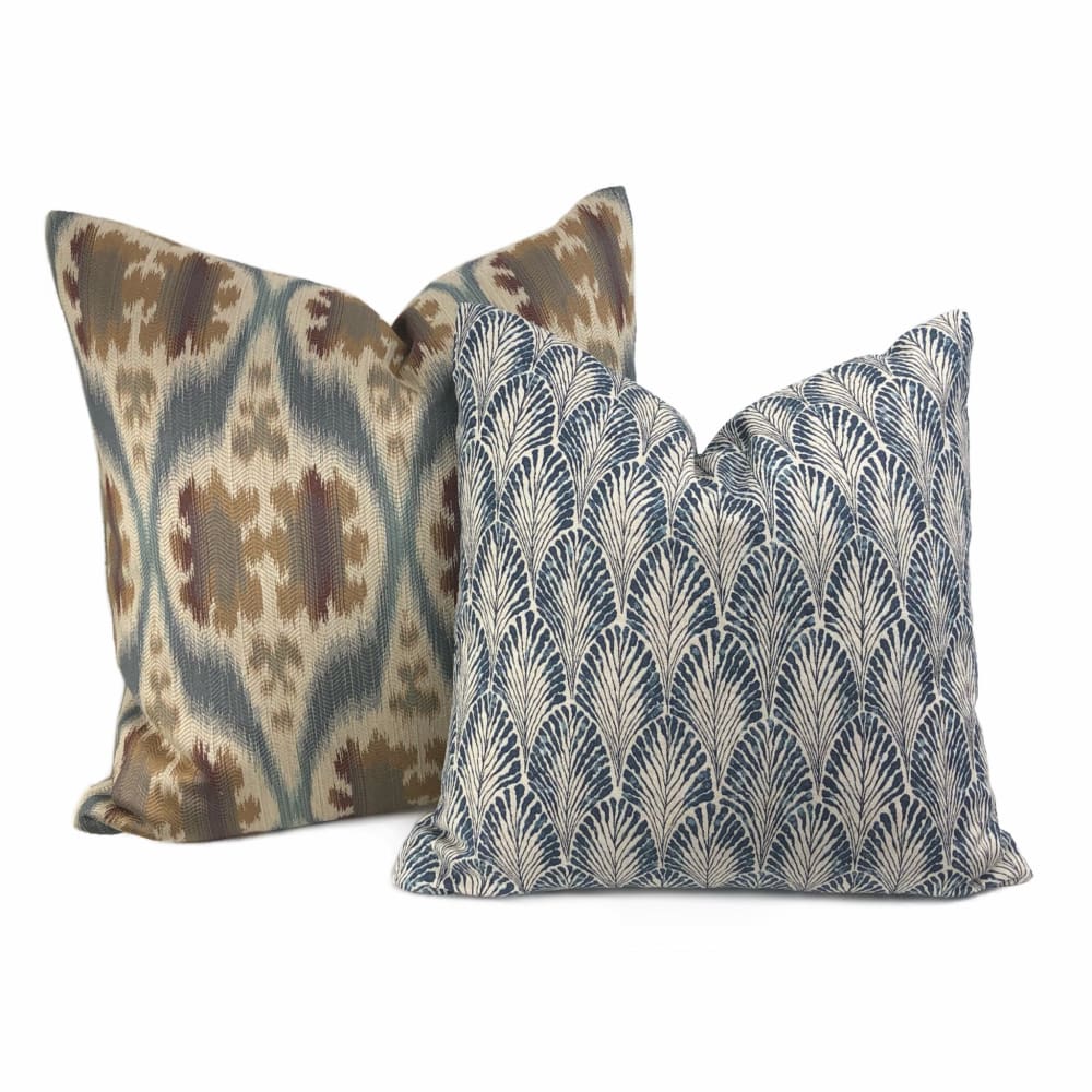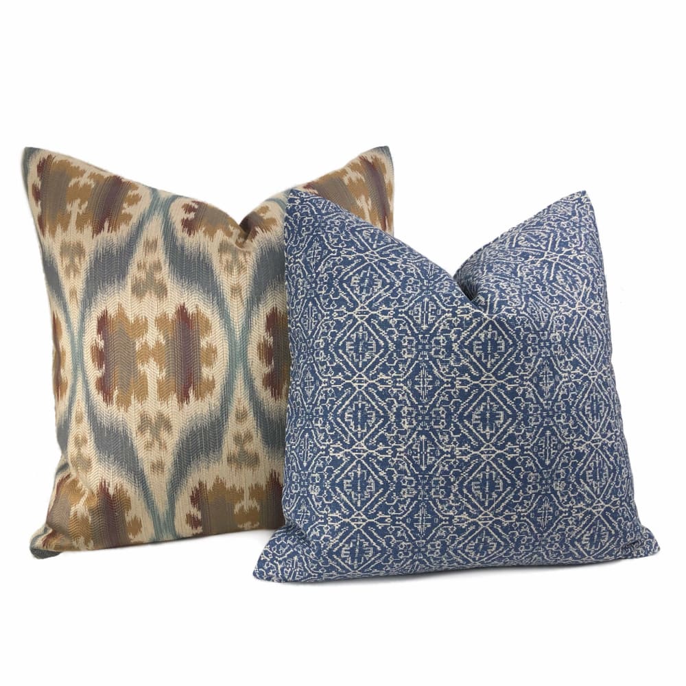 Dinesh Ikat Ethnic Motif Slate Blue Tan Beige Brown Pillow Cover (Kravet 32548.516 fabric)