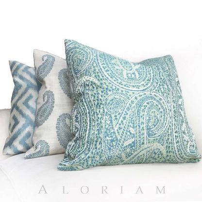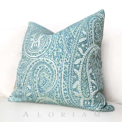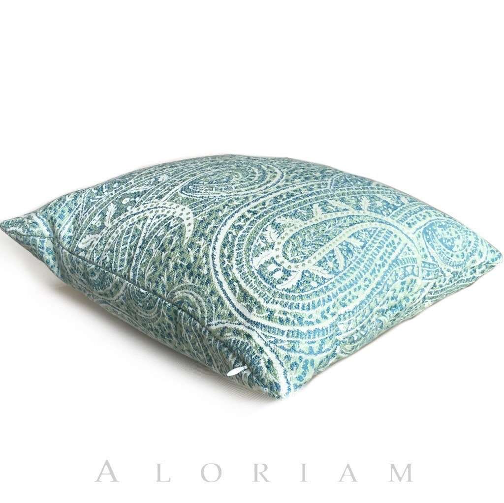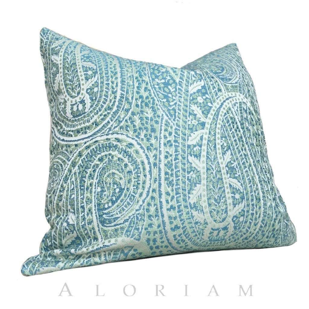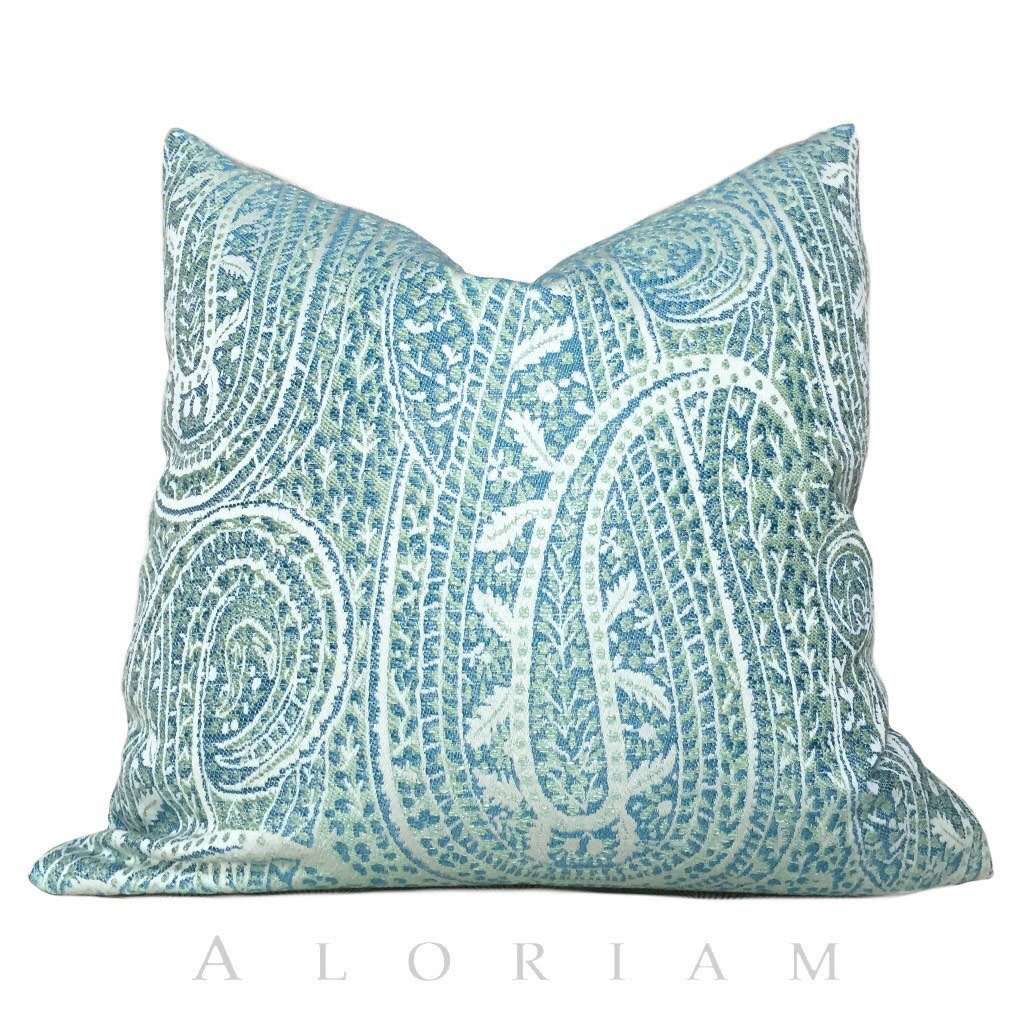 Kravet Blue Green Cream Paisley Floral Pattern Pillow Cushion Zipper Cover