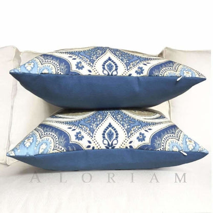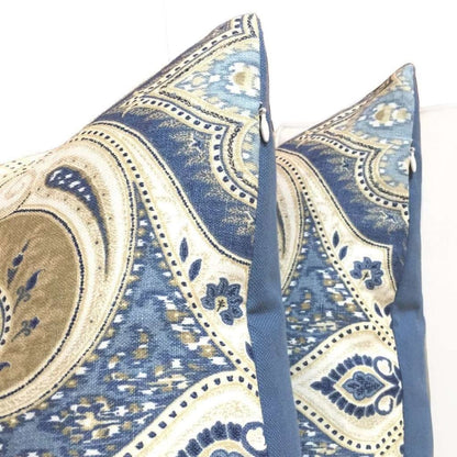 Sewn in a gorgeous Kravet designer paisley medallion "Latika" fabric in colors of blue, cream, brown, beige, light gray ("delta" colorway), this pillow cover will breathe new life into your decor!