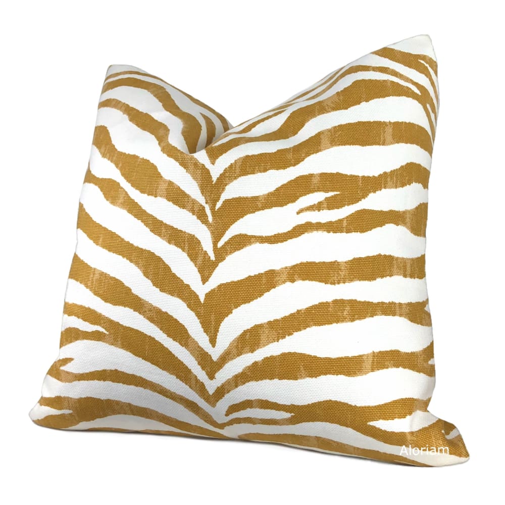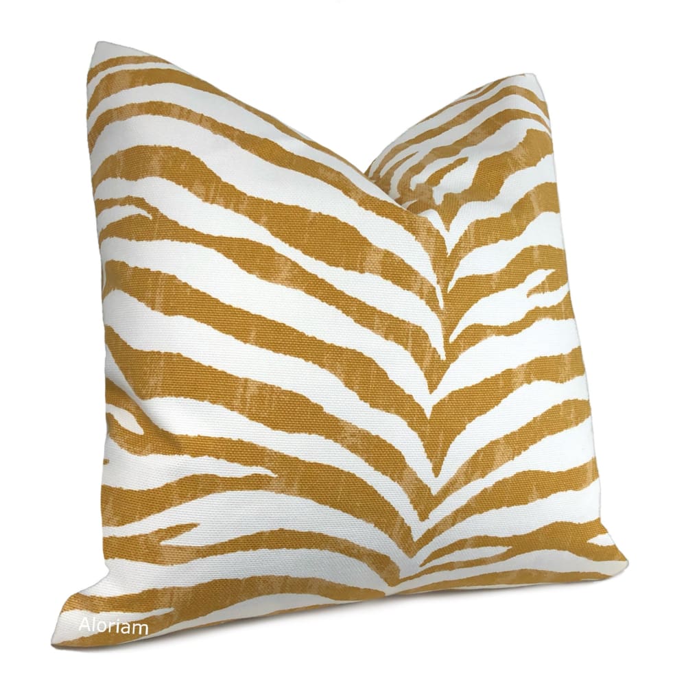 Kravet Limpopo Ochre Gold White Tiger Stripe Pillow Cover