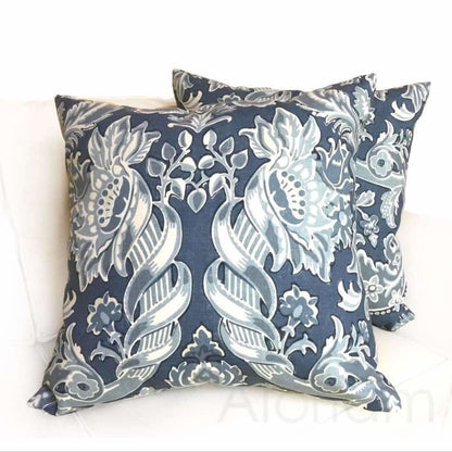 (CLEARANCE) Kravet Lorton Blue White Damask Print Linen Pillow Cover