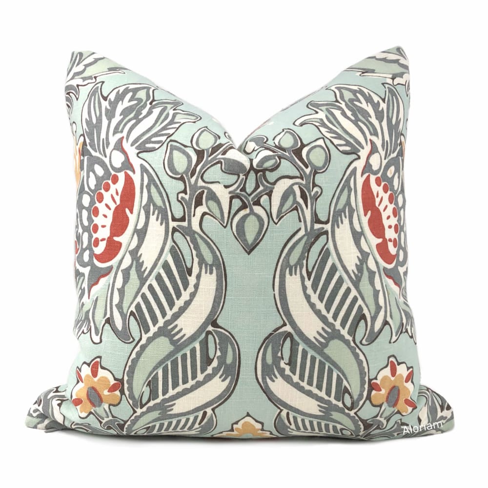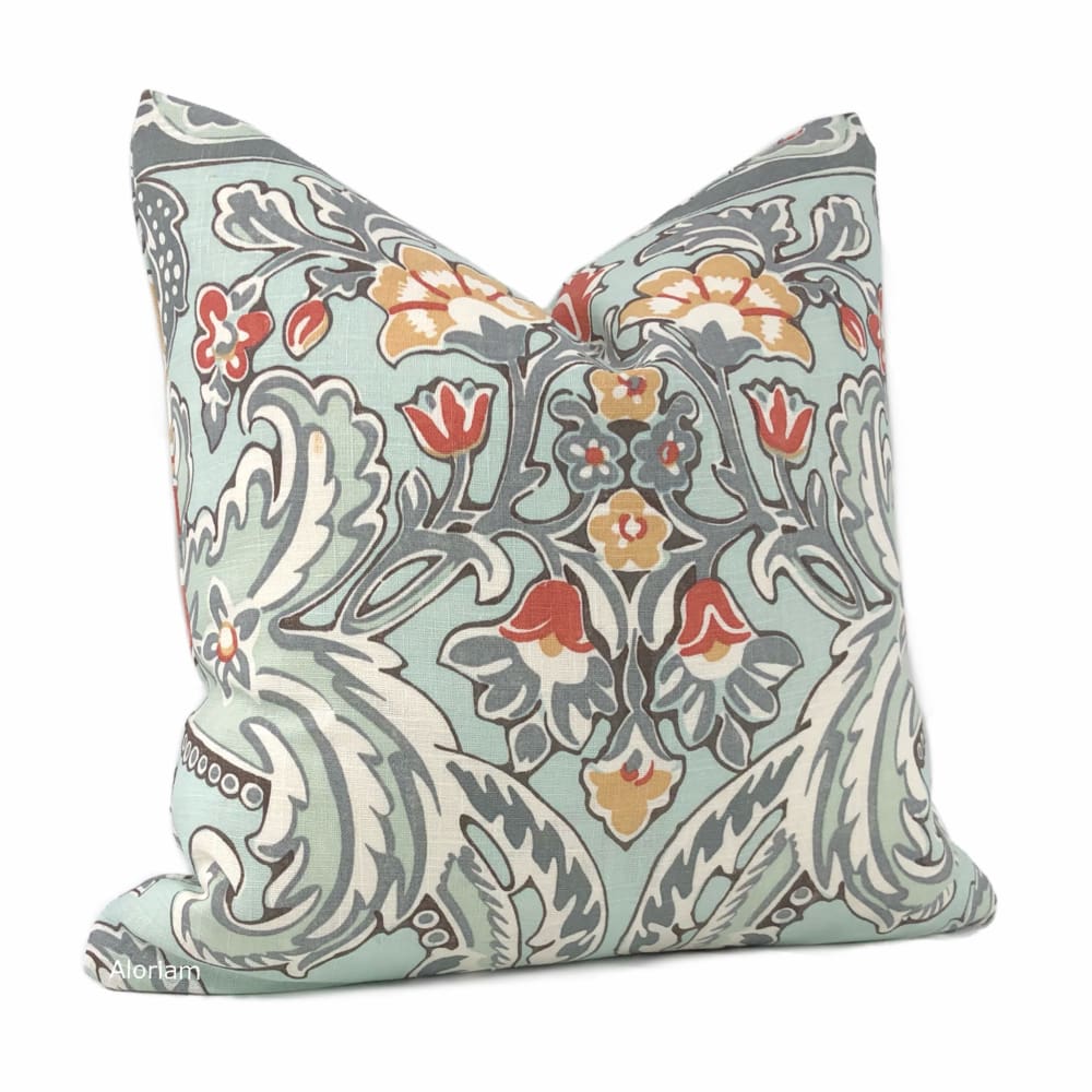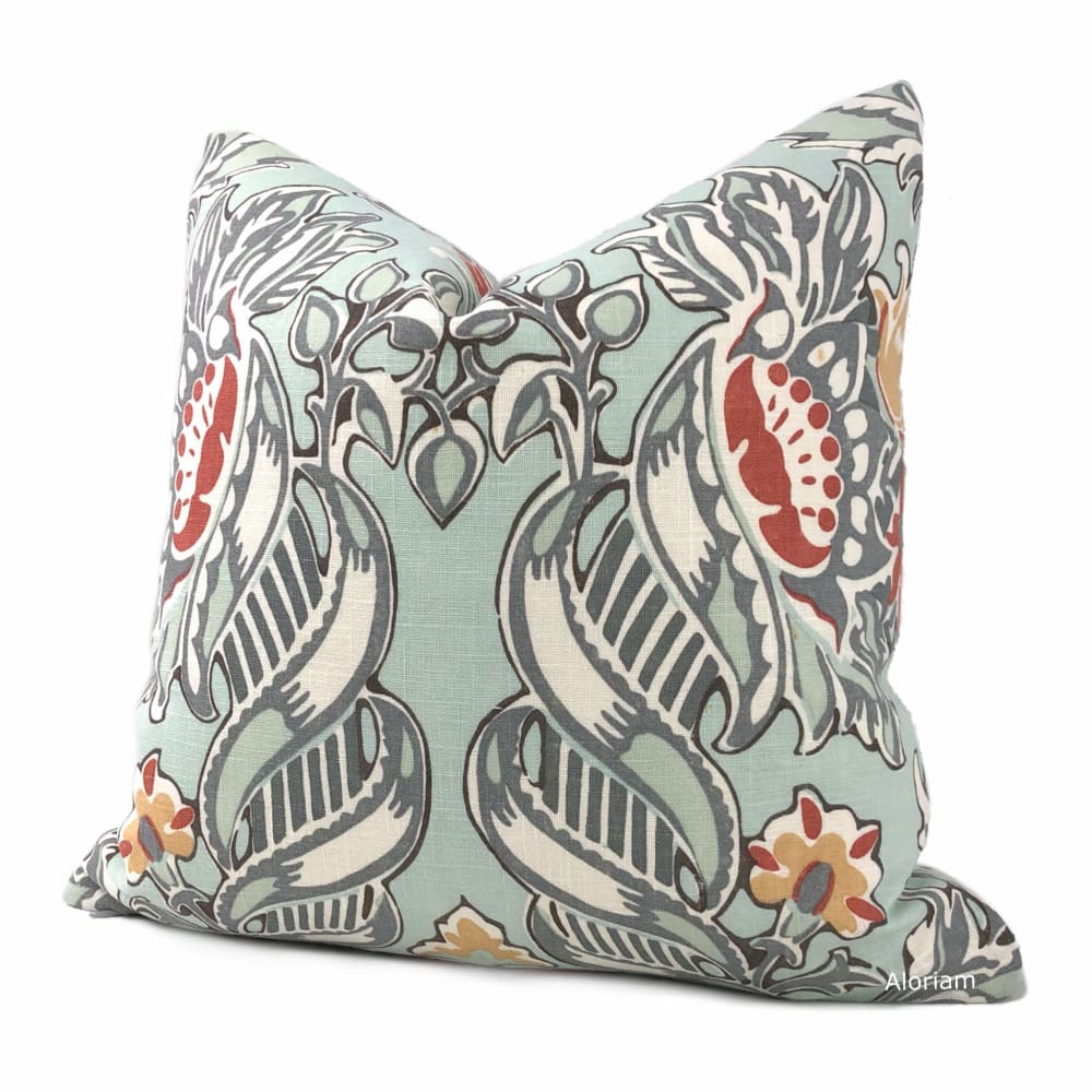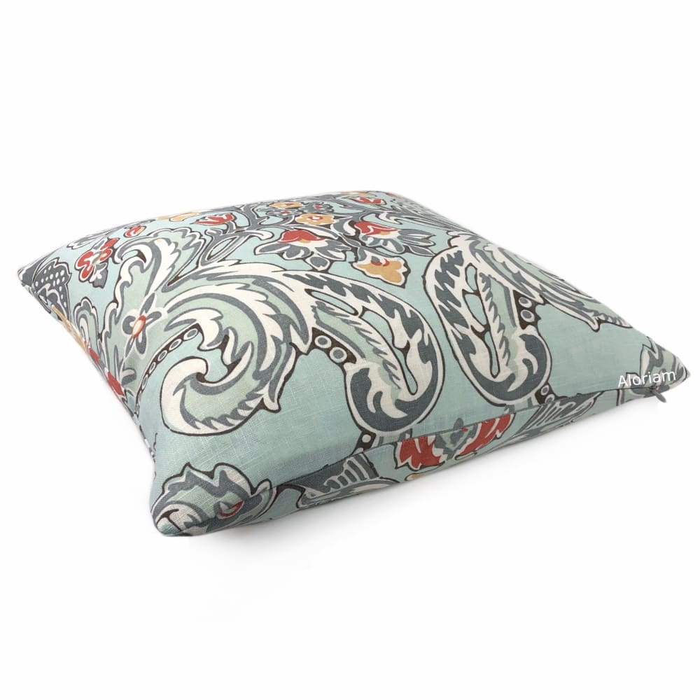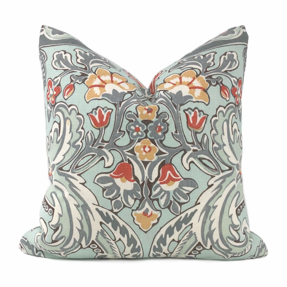 Kravet Lorton Light Blue Orange Gray White Damask Linen Throw Pillow Cover