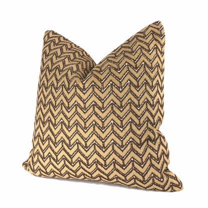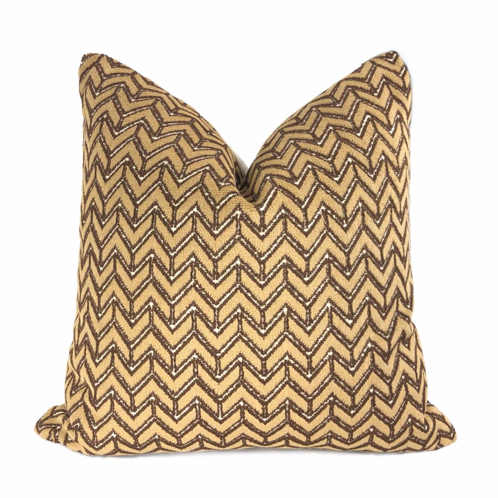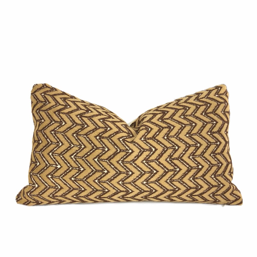 Lee Jofa Camel Beige Chevron Velvet Pillow Cover