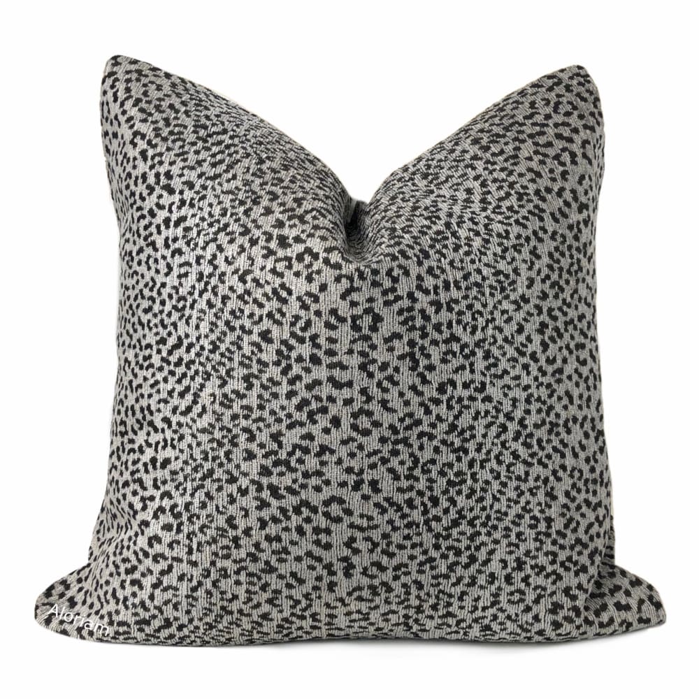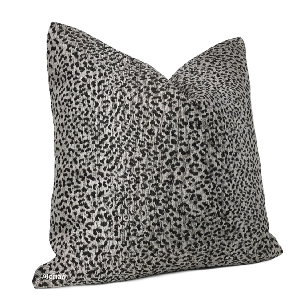 Lionel Black Gray Leopard Spot Chenille Pillow Cover (Fabric by the Yard available)